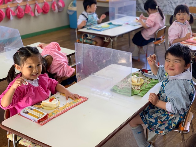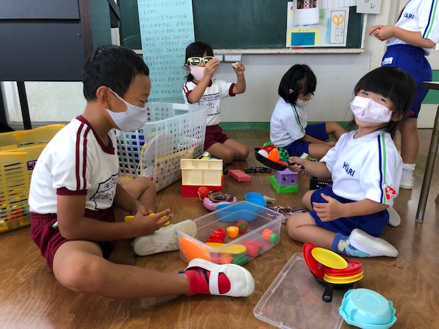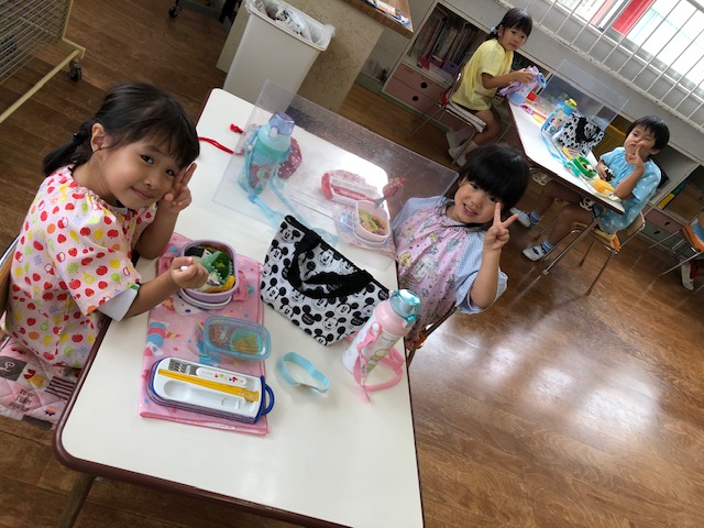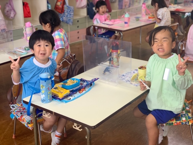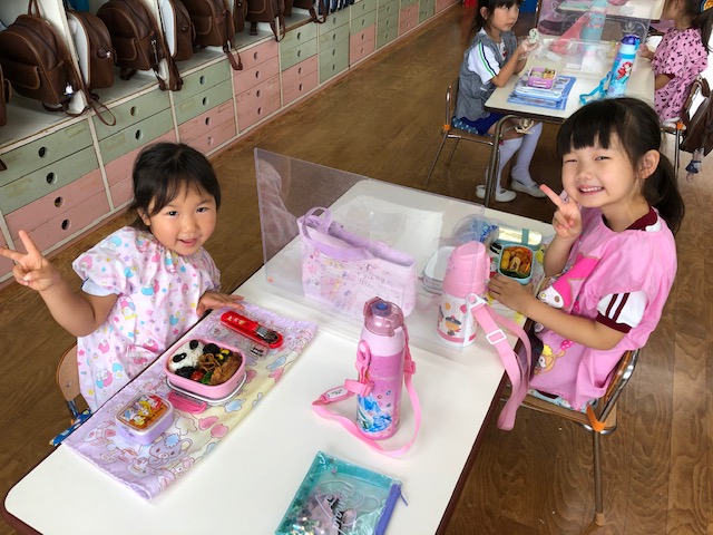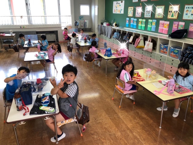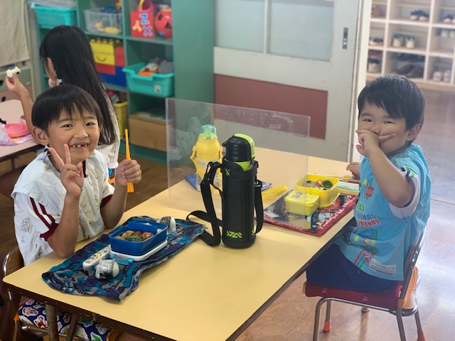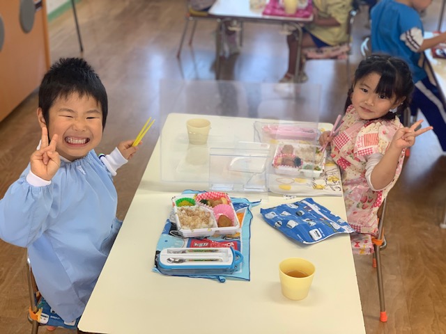今日は今年度初めての縦割り活動を行いました。今年度はしばらくの間縦割り活動を延期していましたが、感染症対策をしながら短い時間ではありましたが5つのカラーにわかれて異年齢のお友達と交流をしました☆年長組さん、年中組さんは年少組さんに優しく声を掛け、お弁当の準備のお手伝いをしてくれる場面も♪自己紹介や愛情弁当など各カラーで楽しく過ごせました!