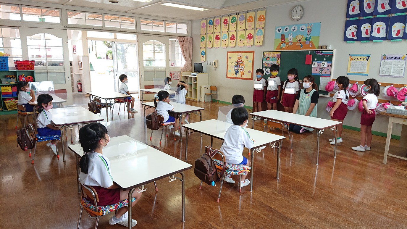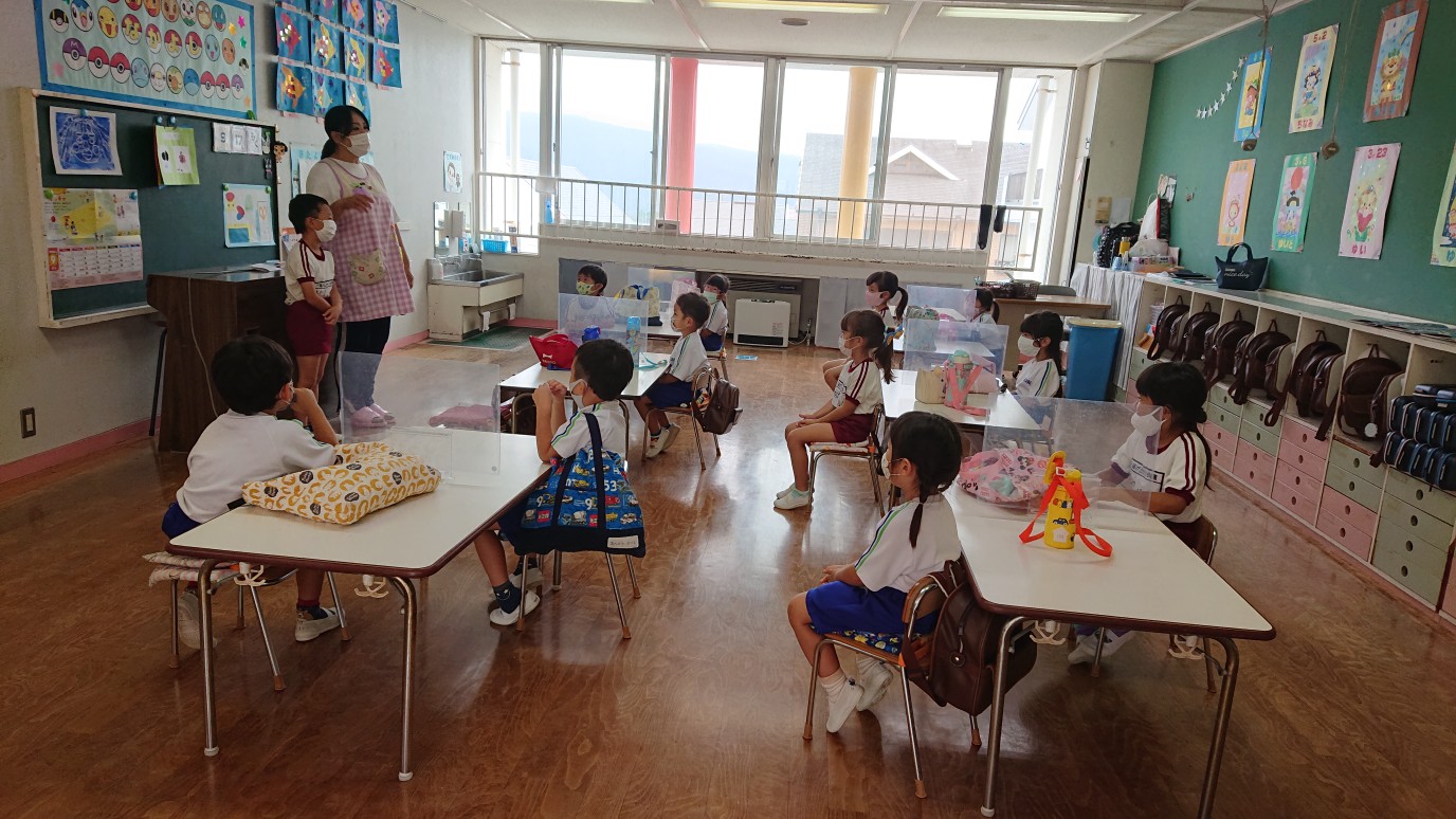 早いもので今日から9月。今日は「園内総合防災訓練」を行いました。発令のサイレンが鳴ると年長組、年中組はスムーズに机の下に入り防災頭巾も素早く被ることができました。年少組は、少し戸惑いながらも真剣に訓練に参加し、1学期間で大きく成長した姿が見られました。第二次避難場所までは、年長組が年少組の手を引き優しくリードしてくれました。保護者の皆様、お迎えをありがとうございました。
