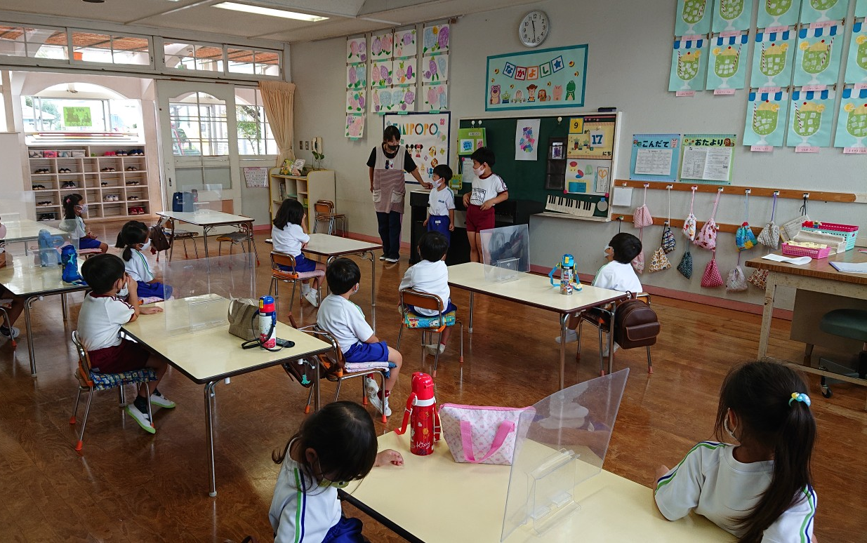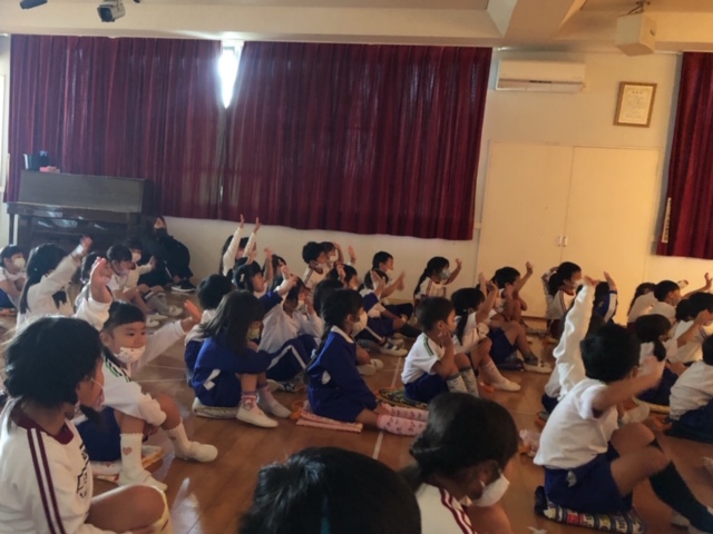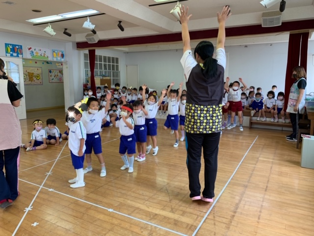 いよいよ2学期が始まりました。始業式では、初めにみんなで「のんのんののさま」や「朝のうた」、「幼稚園園歌」を歌いました♪園長先生からは、行事のお話、挨拶の大切さなどのお話があり、どの子も真剣に聞く姿が見られました。また、「2学期に頑張りたいことがあるお友達~」と質問すると手を挙げてくれる子が沢山☆各学年ごと少し緊張しながらも大きな声で発表してくれました!縄跳びが100回跳べるようになりたい!、マラソン大会で1位をとりたい!、運動会のかけっこで1位になりたい!など、様々な頑張りたいことがきけました。明日からも元気一杯、そして楽しく幼稚園生活を過ごしていきたいと思います!