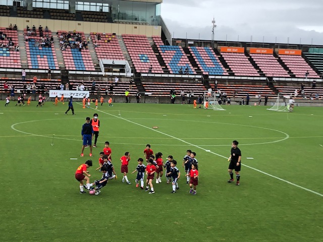 IAIカップ県チャイルドサッカー大会に、課外サッカー「FACT」に在籍する園児が出場しました。「頑張るぞー」と円陣を組みやる気満々!練習の成果を発揮し、ボールを奪い合ったりゴールにシュートをきめたりと、たくさんの頑張りをみせてくれました☆この大会の模様は静岡第一テレビで10月10日(土)午前10時30分から放送するそうです。ぜひご覧ください! | ![]() |