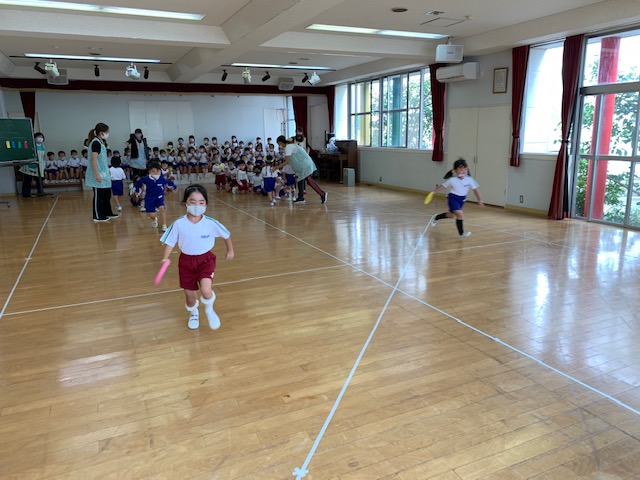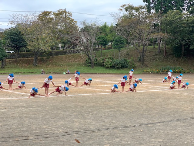 運動会がいよいよせまってきました!今日は全園児で「みせっこ」を行いました!年長組さんのドラム演奏や組体操。年中組さんのパラバルーン。年少組さんのお遊戯。これまでの練習の成果を発揮し、張り切って行う姿が見られました♪終了後には「かっこよかった!」「かわいかた!」「じょうずだった~!」などと口々に言い合い、運動会に向けてさらに自信や、やる気に満ち溢れた様子が伺えました☆また、縦割りリレー練習では、全園児で協力してバトンを繋ぐことができました!運動会まであと少し☆当日に向けて、これからも力を合わせて頑張ろうね♪