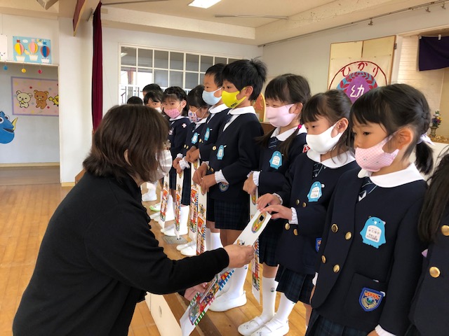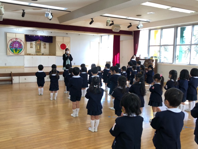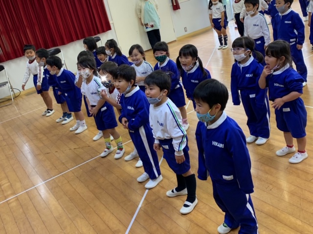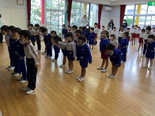 2学期の終業式を行いました。新型コロナウイルス感染症拡大に伴って、感染症対策をしながら園生活や各行事を行ってきましたが、本日無事に2学期を終えることが出来ました。ひかり祭りや運動会、遠足、マラソン大会、スカイウォークでのドラム演奏などの行事を通してみんなで楽しんだり、力を合わせて頑張ったりと、子どもたちにとって思い出に残る学期となったことと思います。保護者の皆様には、ご理解、ご協力を頂き本当に感謝致します。