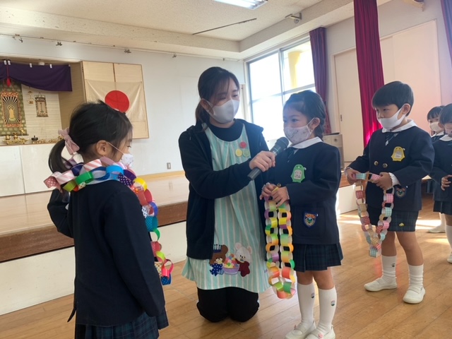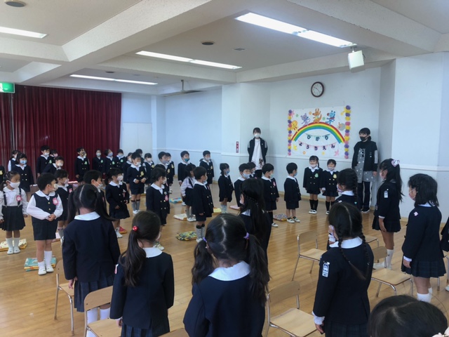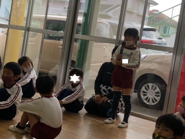 終業式では新たに入園した子、今月で退園する子の紹介も行いました。3学期にまた、元気いっぱいの子どもたちに会えることを楽しみにしています。