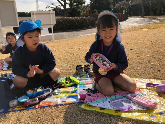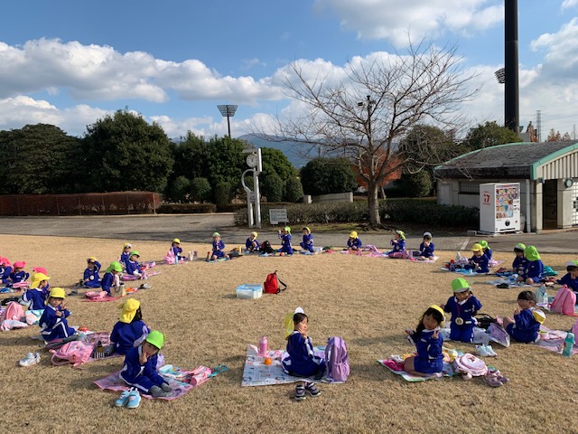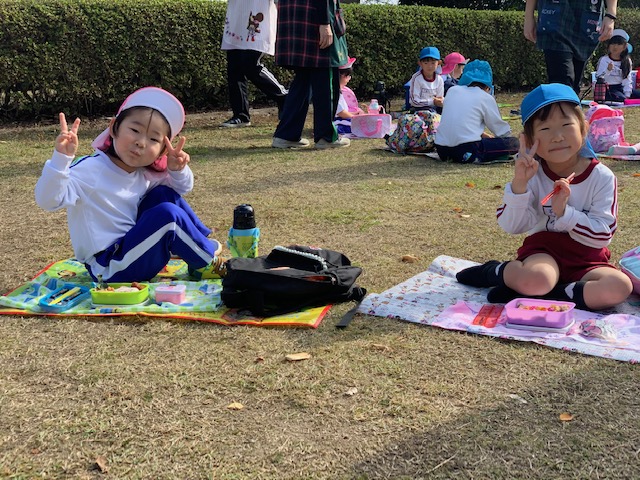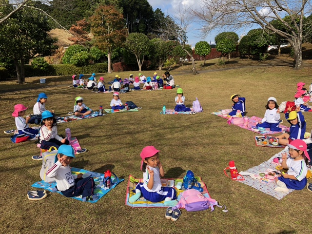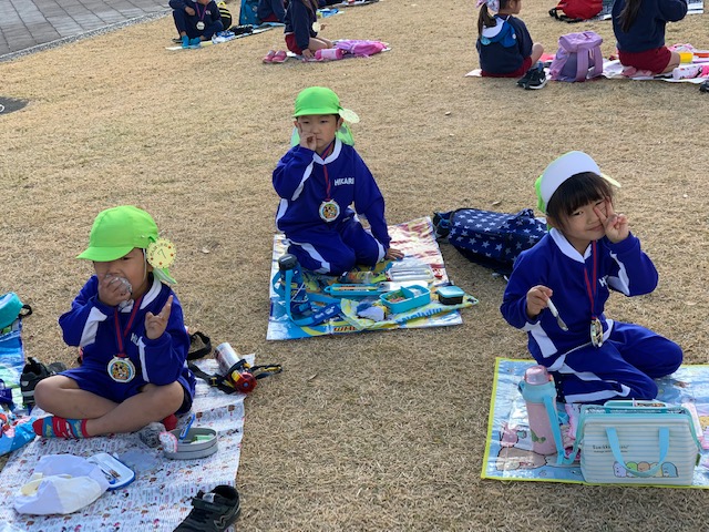 ![]() | マラソン大会のあとは芝生の丘で楽しくお弁当を食べました♪どの子ももりもりと食べ、あっという間に完食!頑張ったあかしのメダルもキラキラと輝いています☆ |