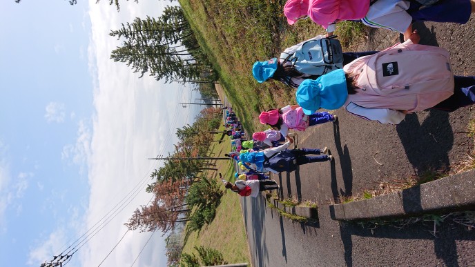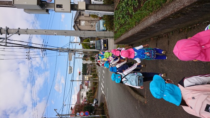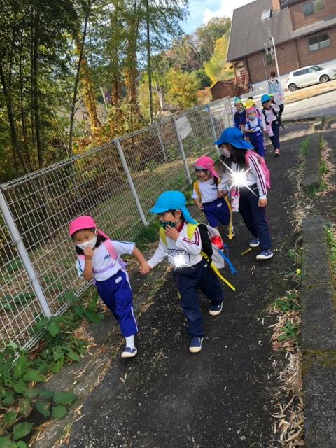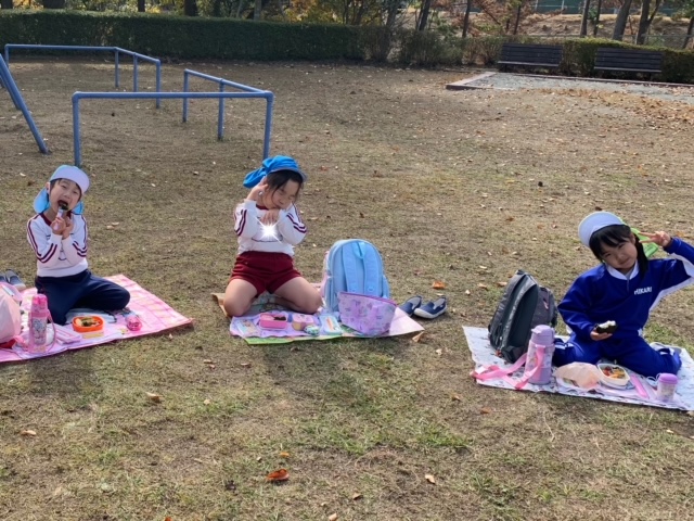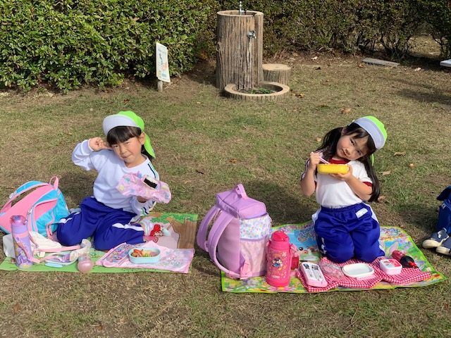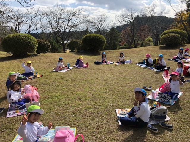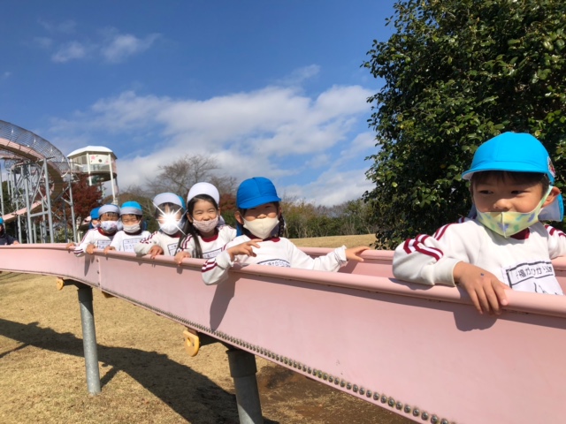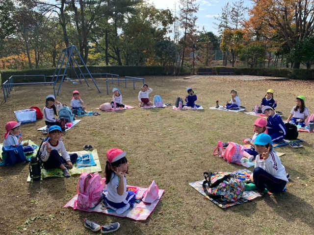 縦割り活動で「みはらし公園」に行ってきました!お弁当を持って、公園へ出発♪公園までの道のりも、「葉っぱの雨だ~」「お花が咲いてる~」などと会話を楽しむ様子が見られました。公園では、お弁当を食べたり、遊具で遊んだり、丘の上へ登ったりと異年齢のお友だちとの関りもたくさん見られ、楽しい縦割り活動となりました☆
