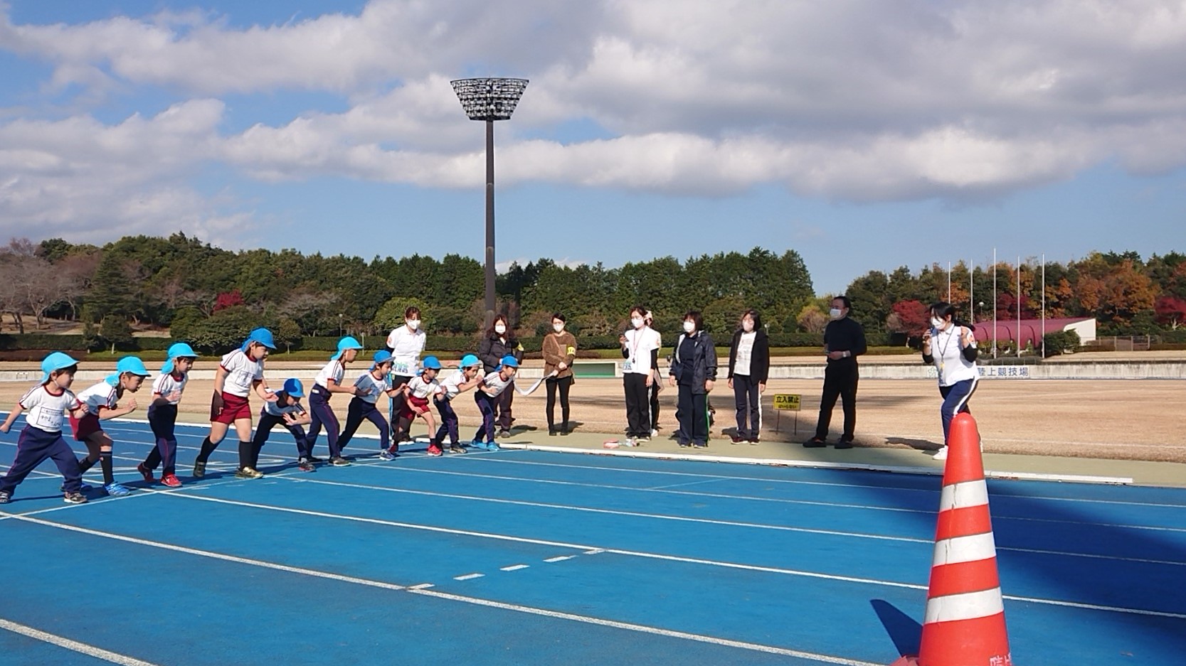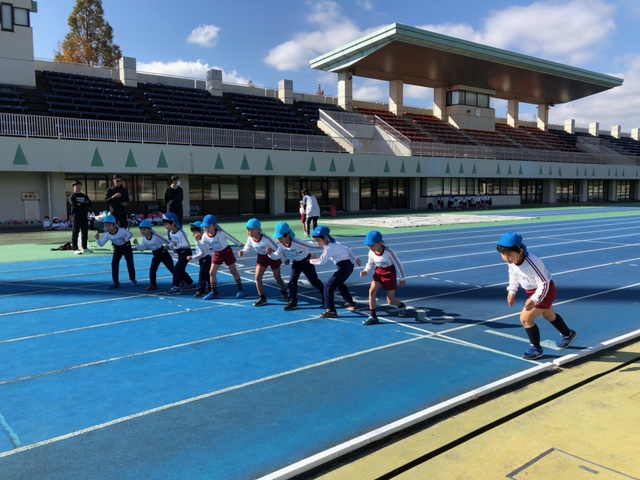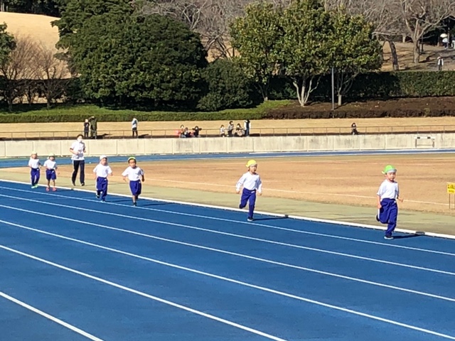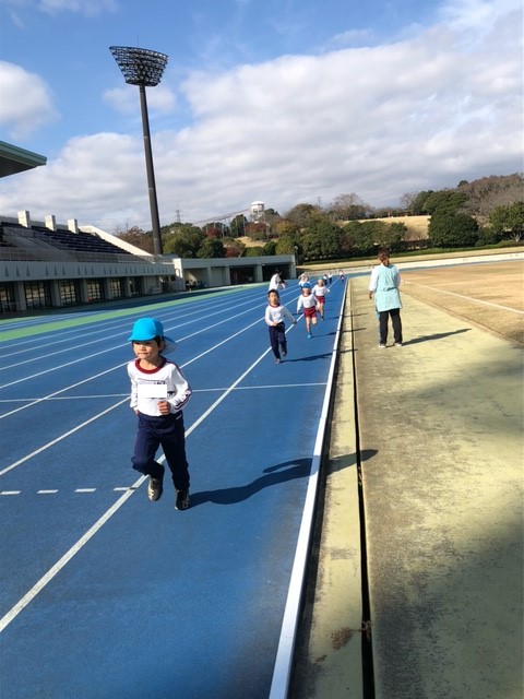 裾野市運動公園陸上競技場でマラソン練習を行いました。普段は園庭でマラソン練習をしていますが、今日は本番で走る競技場で練習をしました。年少組は400メートル、年中組は600メートル、年長組は800メートルを力一杯走り切りました!順位だけではなく、一人一人タイムを測り、本番に向けてのやる気に繋がった練習になったように思います。それぞれ目標を持って、これからも練習をしていこうね♪