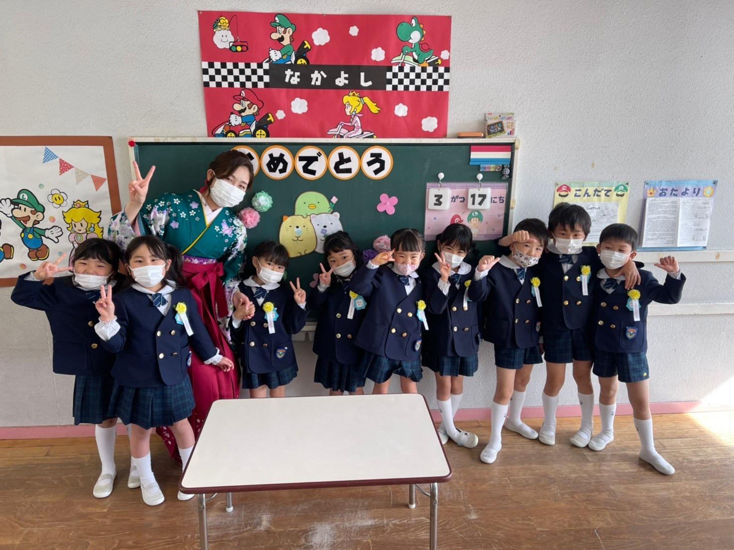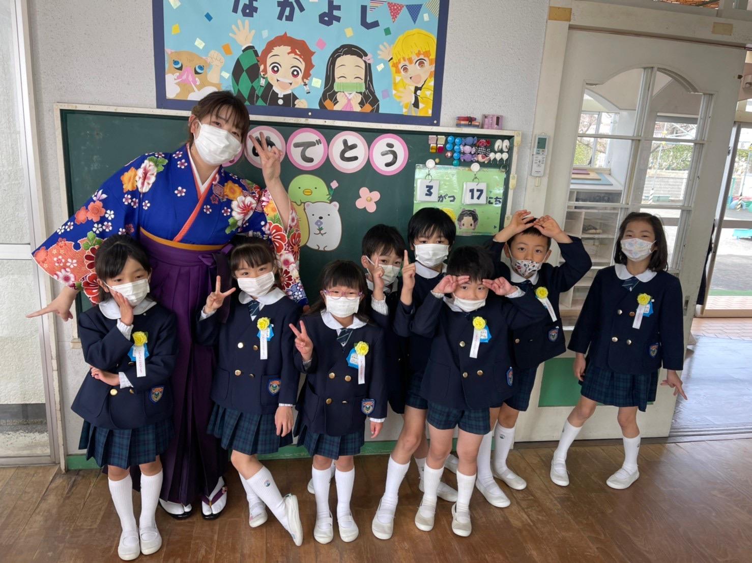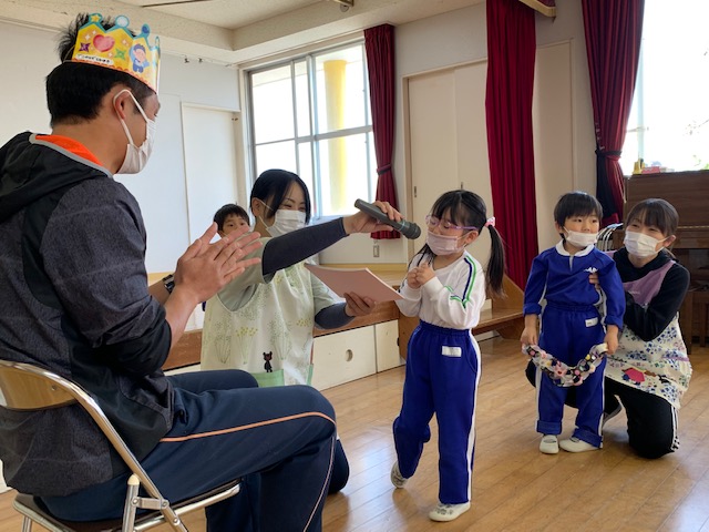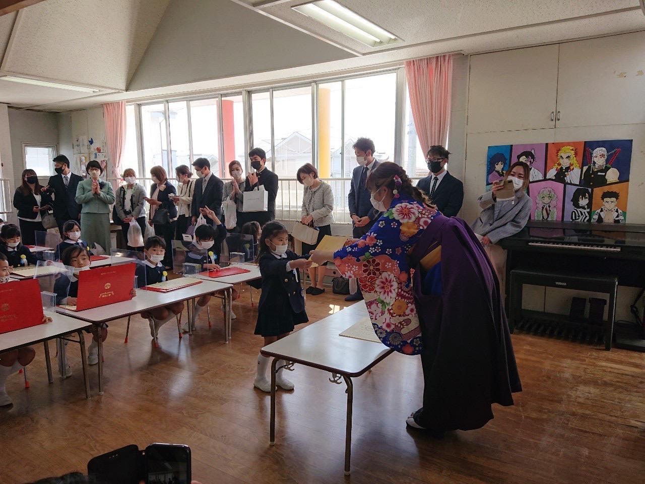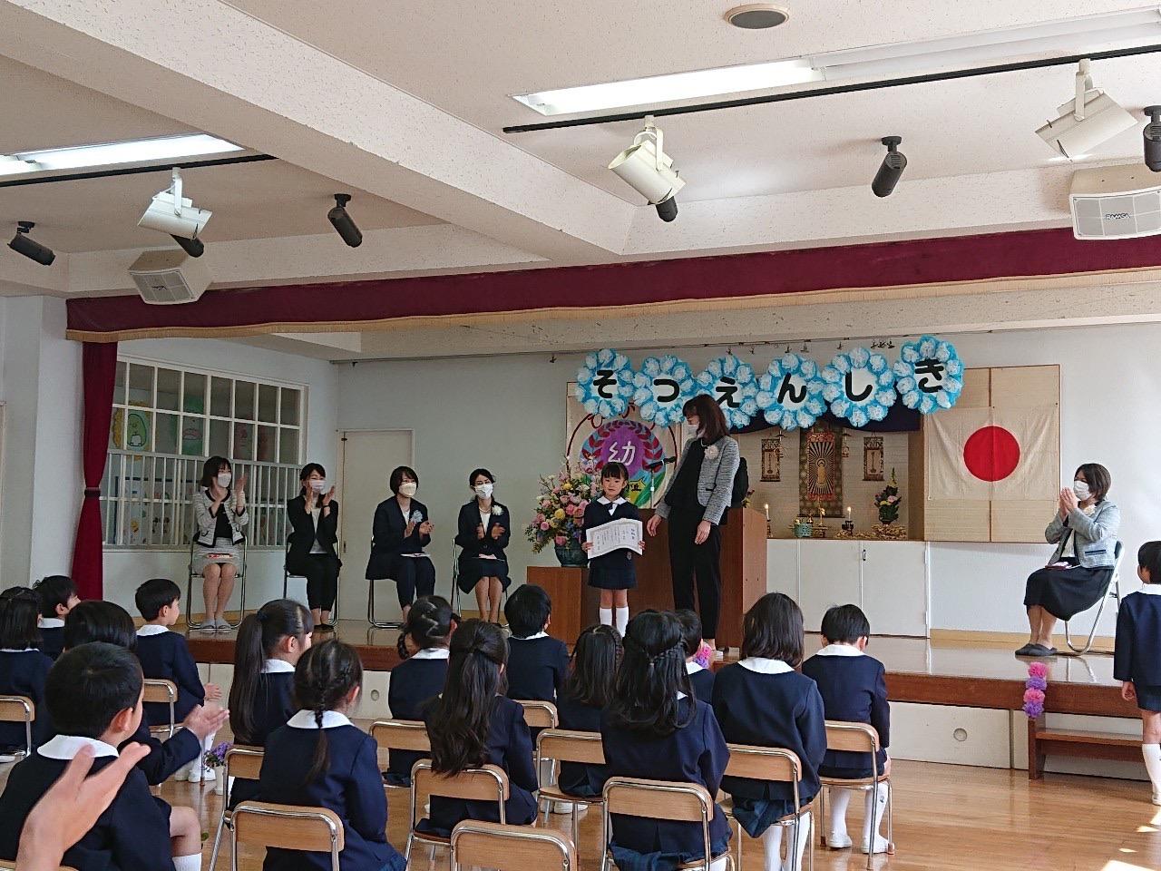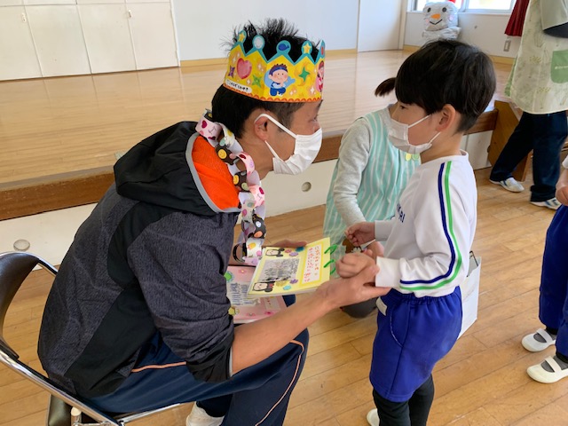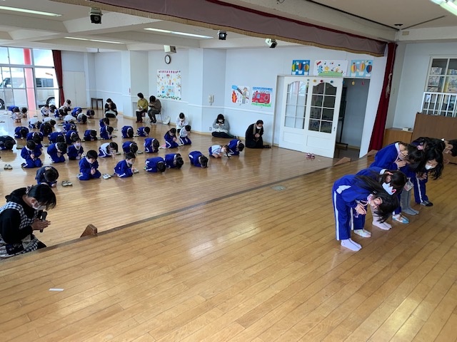 本日は令和3年度修了式を行いました。園長先生から、みんなとても立派に成長しましたね!と褒めてもらい、来年度も新しい学年でがんばりましょうね。というお話をしっかりと聞く事が出来た子どもたち!また、今年1年出席停止関係なく、お休みせずに来てくれた子は園長先生から賞状をもらい、とても嬉しそうでした♪みんな、よくがんばったね‼ 今年度も新型コロナウイルス感染症感染拡大防止対策として、日々の生活をはじめ、各行事においても様々な制限がある中、御協力を頂き誠にありがとうございました。保護者の方々の支えがあり、子どもたちはこの1年を通してとても大きく成長することができたと思います。また、来年も子どもたち一人ひとりが元気にすくすく、のびのび成長できるよう、職員一同努めて参ります。今後ともよろしくお願い致します。 | ![]() |