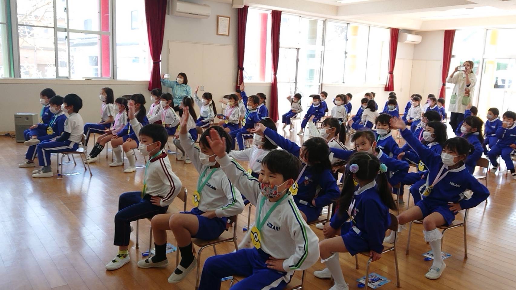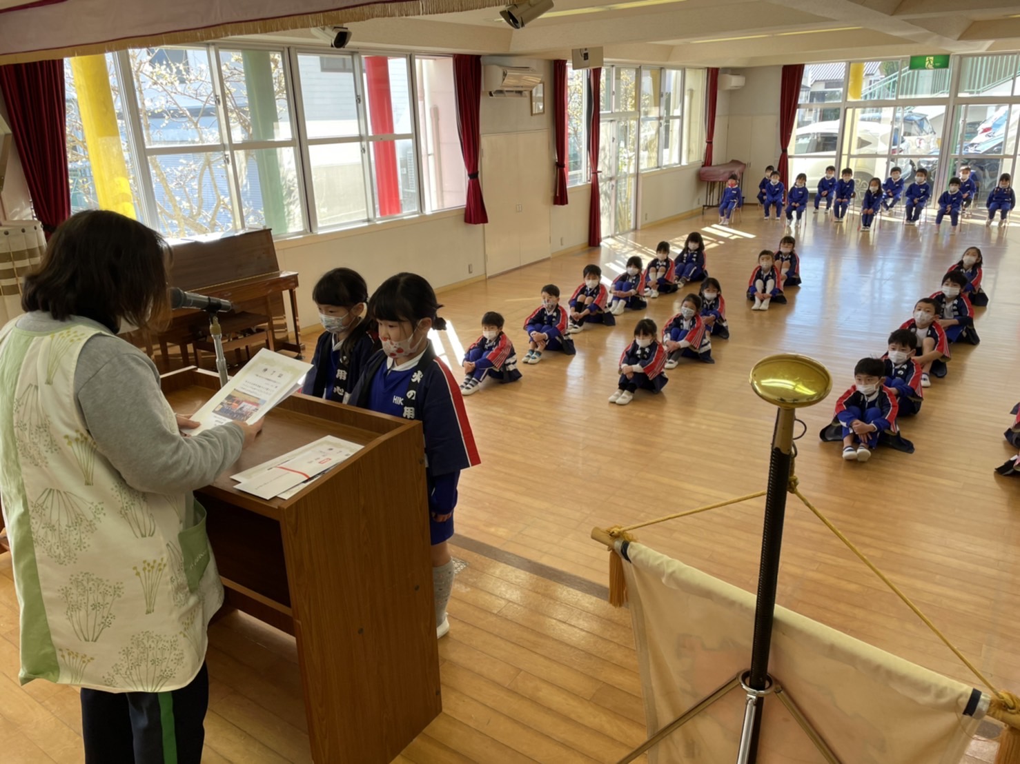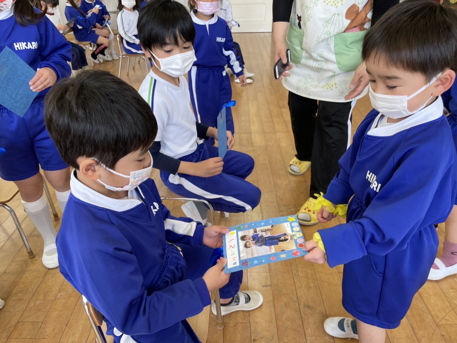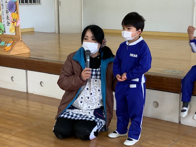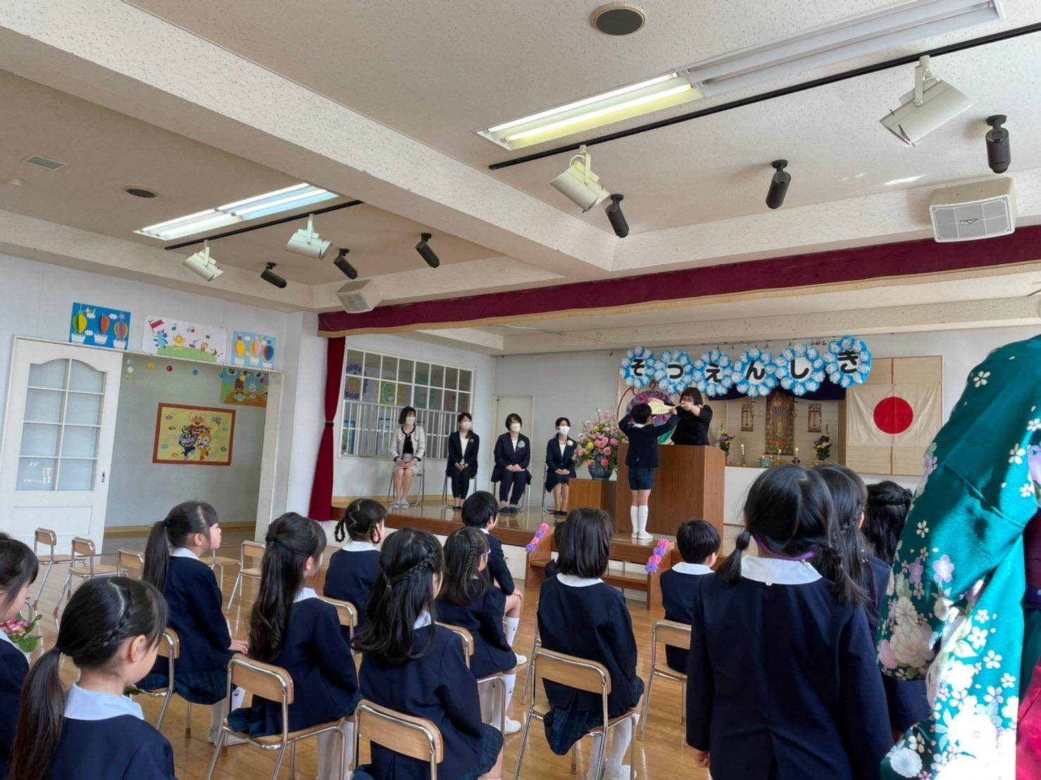 本日は令和3年度修了式を行いました。園長先生から、みんなとても立派に成長しましたね!と褒めてもらい、来年度も新しい学年でがんばりましょうね。というお話をしっかりと聞く事が出来た子どもたち!また、今年1年出席停止関係なく、お休みせずに来てくれた子は園長先生から賞状をもらい、とても嬉しそうでした♪みんな、よくがんばったね‼ 今年度も新型コロナウイルス感染症感染拡大防止対策として、日々の生活をはじめ、各行事においても様々な制限がある中、御協力を頂き誠にありがとうございました。保護者の方々の支えがあり、子どもたちはこの1年を通してとても大きく成長することができたと思います。また、来年も子どもたち一人ひとりが元気にすくすく、のびのび成長できるよう、職員一同努めて参ります。今後ともよろしくお願い致します。 | ![]() |