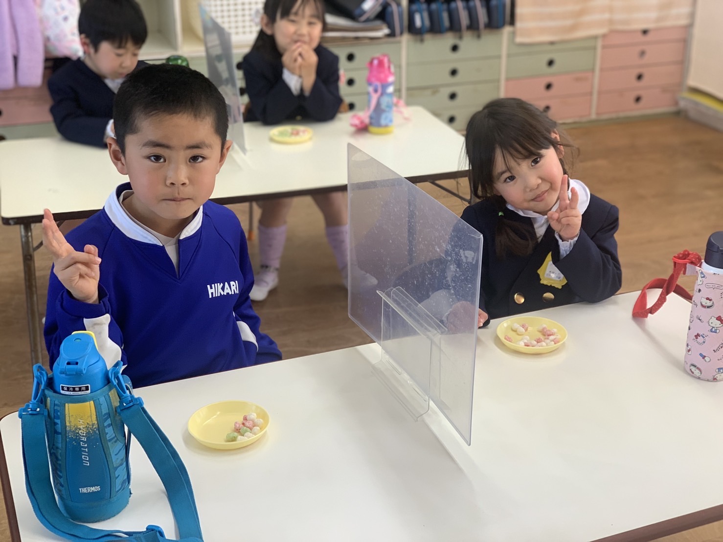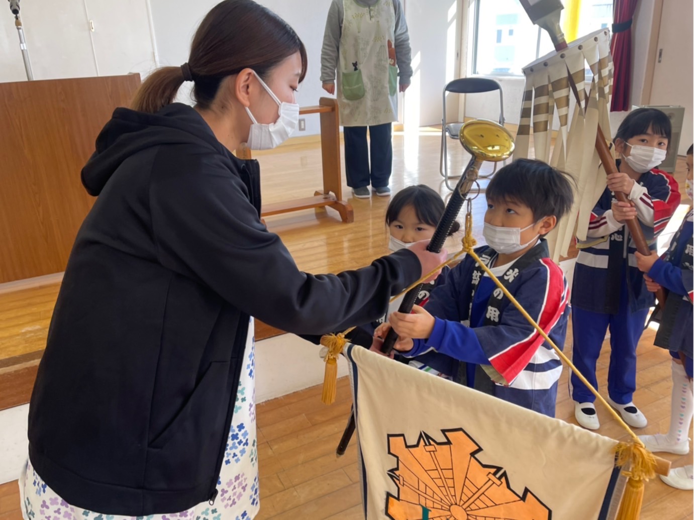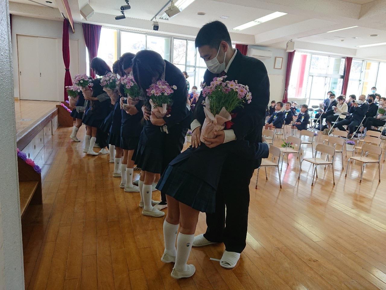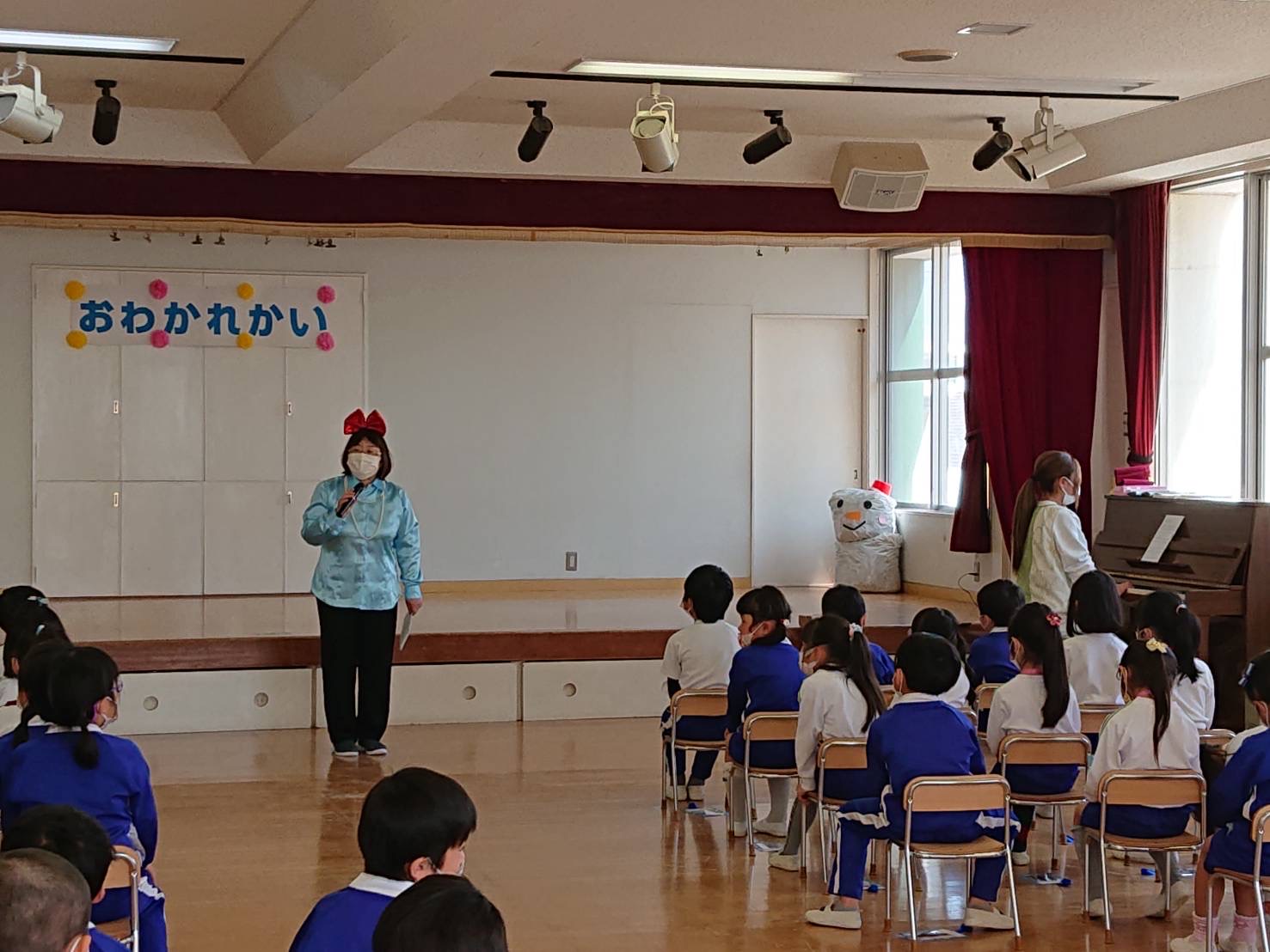 本日は令和3年度修了式を行いました。園長先生から、みんなとても立派に成長しましたね!と褒めてもらい、来年度も新しい学年でがんばりましょうね。というお話をしっかりと聞く事が出来た子どもたち!また、今年1年出席停止関係なく、お休みせずに来てくれた子は園長先生から賞状をもらい、とても嬉しそうでした♪みんな、よくがんばったね‼ 今年度も新型コロナウイルス感染症感染拡大防止対策として、日々の生活をはじめ、各行事においても様々な制限がある中、御協力を頂き誠にありがとうございました。保護者の方々の支えがあり、子どもたちはこの1年を通してとても大きく成長することができたと思います。また、来年も子どもたち一人ひとりが元気にすくすく、のびのび成長できるよう、職員一同努めて参ります。今後ともよろしくお願い致します。 | ![]() |