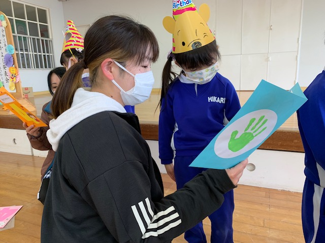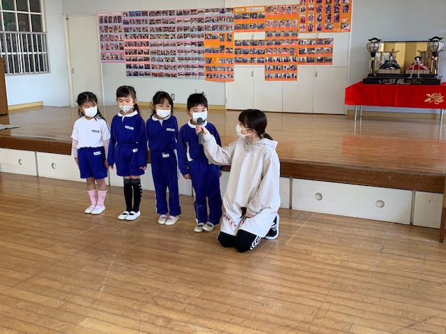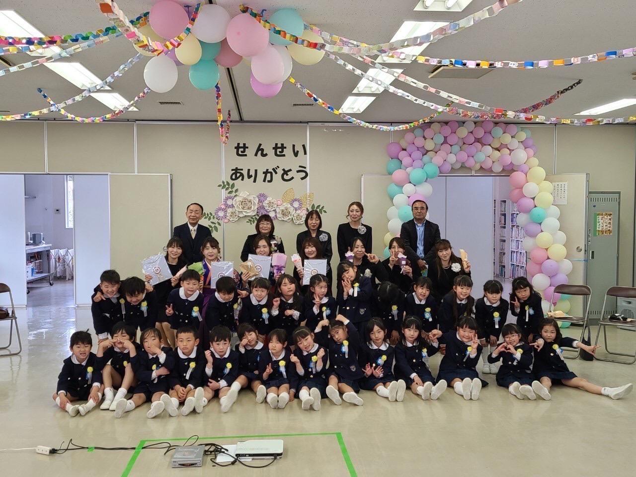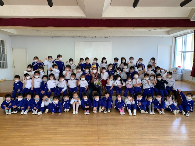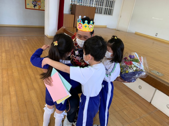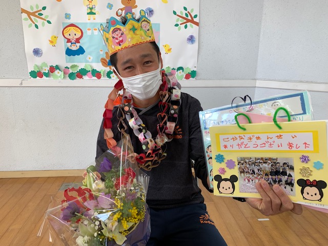 今日は4年間体操を指導してくださった「小栁先生」のお別れ会を行いました。色々な運動ができるようになっただけでなく、体を動かすことの楽しさを全力で教えてくれた小栁先生…。子どもたちはみんな小栁先生が大好きでした!お別れ会の時は涙を流す子どもの姿もみられ、プレゼントやお歌を通して「ありがとう」「これからもがんばります!」という気持ちを伝えました。小柳先生もこれからも元気にがんばって下さい。今までありがとうございました。 | ![]() |