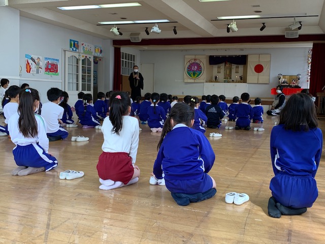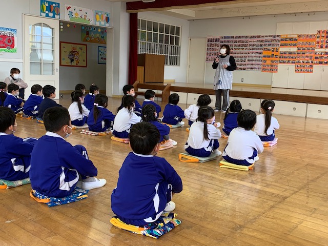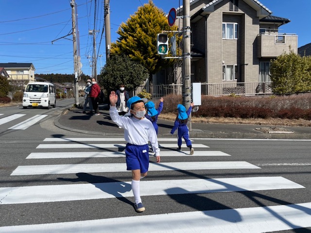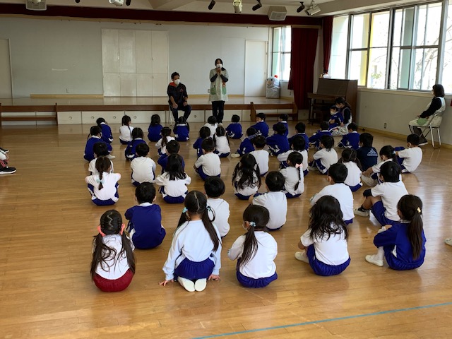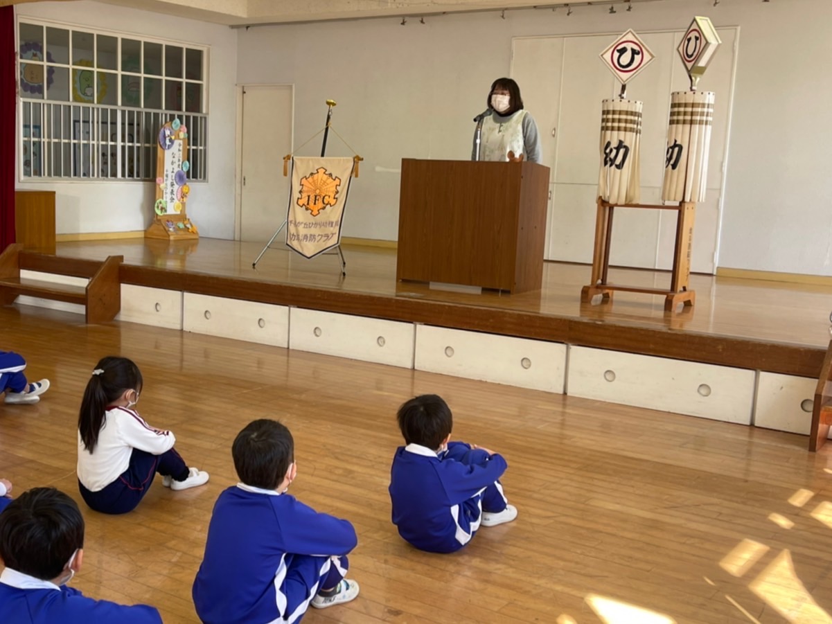 今日は幼年消防クラブの修了式を行いました。今年度も感染症対策の為、活動は縮小や中止となったものが多かったですが、消防署での体験入署などを通してこの1年防災について学んできました。代表の子が修了証を受け取ったり、三つの誓いを大きな声で言ったり、防災についての紙芝居を見たり…たんぽぽ組さんにもしっかりと引き継ぎをすることができたさくら組さん。幼稚園で学んだことを小学校に行っても忘れずにいてほしいと思います。 | ![]() |