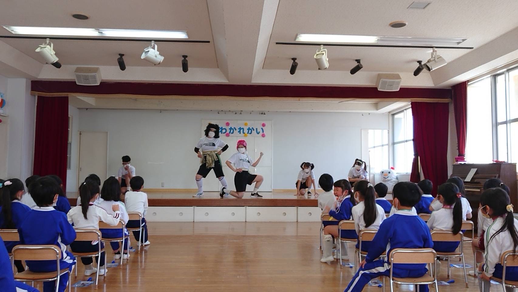 なかよし発表会まで残すところ3週間となり、子どもたちは元気一杯練習に取り組んでいます!そこで13日と14日は、各学年のおゆうぎ、オペレッタ、合奏の「みせっこ」を行いました☆子どもたちは今できる力を発揮し、とても生き生きと発表してくれました。演目が終わると「かわいかった~」「かっこよかった~」「すごーい!」などの感想が飛び交い、とても有意義な時間となりました。当日も素敵な演目を披露できるよう、残りの時間もみんなで楽しく練習しようね!保護者の皆様、発表会本番を是非楽しみにしていてください♪ | ![]() |