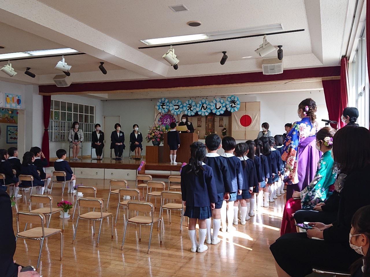 本日、青空の下令和3年度卒園式を行い27名の子どもたちが千福が丘ひかり幼稚園を卒園しました。さくら組さん、保護者の皆様、誠におめでとうございます。新型コロナウイルス感染症拡大防止対策をした上での開催となりましたが、涙あり、感動ありの素敵な式となりました。3年間の園生活で経験した楽しかったこと、がんばったこと…等たくさんの思い出を胸にそれぞれの道に大きく羽ばたいて行って下さい。職員一同みなさんのご活躍をいつまでも応援しています!