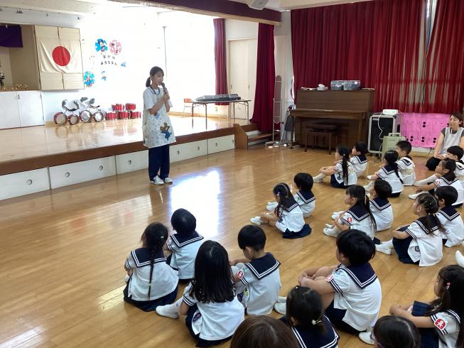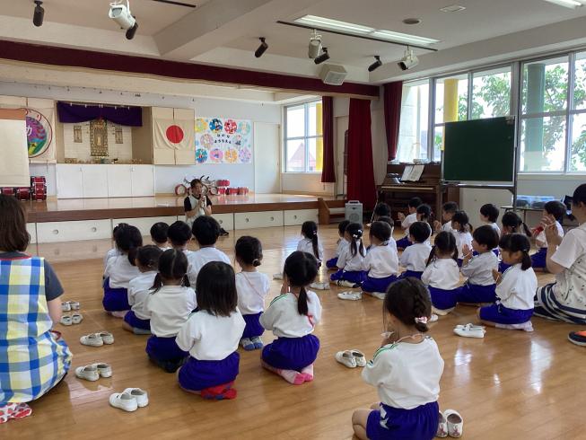 各学年3日間に分かれて、「保育参観」を行いました!24日はすみれ組さんの参観!幼稚園が始まってこんなことができるようになったよ~!とおうちの人に幼稚園の様子を見せます☆そして次にお遊戯室に移動してリトミック!音に合わせて体を動かして七変化♪最後にはみんなでおうたの発表をしました♪25日はたんぽぽ組さんの参観!たんぽぽ組さんは運動会に向けて頑張って取り組んでいるバルーンを初披露!たくさんの技を披露した後は、おうちの人にも一緒にバルーンに挑戦!大きい技に大興奮の子どもたちでした☆26日はさくら組さんの参観!さくら組さんは今一生懸命取り組んでいるドラムレッスン!小楠先生と一緒にドラムを頑張っている姿が見られました☆最後にはみんな楽しみにしているお泊り保育でやる予定のマイムマイムをおうちの人と一緒にやって大盛り上がり♪それぞれの学年で輝く姿が見られた保育参観でした♪