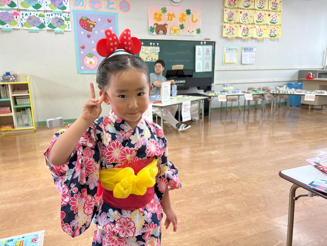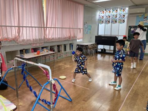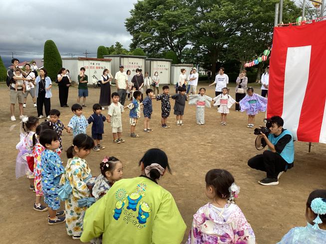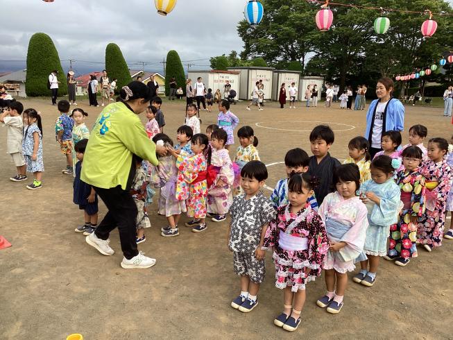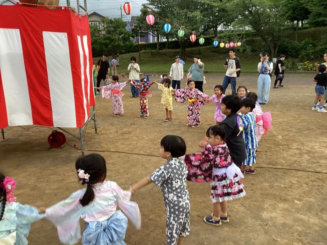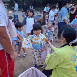 今日は1学期最後を締めくくる行事「納涼祭」!この日を待ちに待った子どもたち☆幼稚園では先生たちと保護者会が模擬店がたくさん開かれいました!ゲームコーナーや光るおもちゃ、宝探しやチューチューアイス・・・いろいろな模擬店に大興奮な子どもたち♪幼稚園の模擬店を目一杯楽しみました☆その後、中央公園に移動しみんなで盆踊り!この日のため、おうちの人たちの協力でおっきいやぐらが!!本物のお祭りみたいでとっても楽しい雰囲気に♪みんなで練習した盆踊りを太鼓に合わせて踊りました☆1学期最後の行事が終わって、明日からいよいよ夏休み☆2学期、また元気姿を見せてね♪