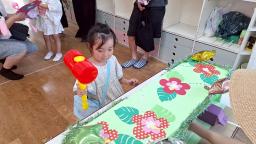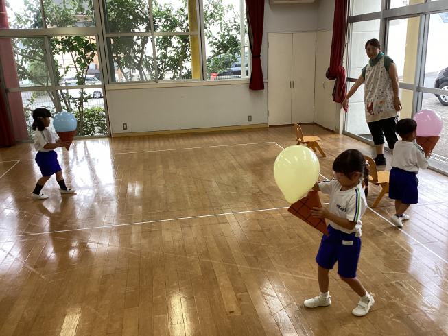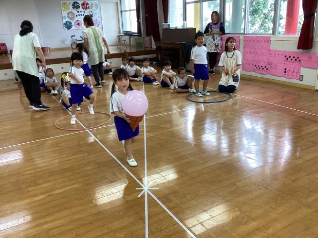 本日は8月生まれのお友だちの誕生会を行いました!8月生まれのお友だちはたんぽぽ組から2人のお友だち☆2人仲良く前に出てきてくれました♪インタビューに対してしっかり自分の声で答えてくれした☆先生たちからお祝いのバースデーカードをもらい、みんなからのお歌のプレゼント!次は先生からのお楽しみ☆今回のお楽しみは「風船アイス運びリレー!」ふわふわの風船をコーンに入れて慎重に運びます!ソーダ、バニラ、ストロベリーフレーバー、3種のアイスを頑張ってみんなで運びました☆お誕生おめでとう♪