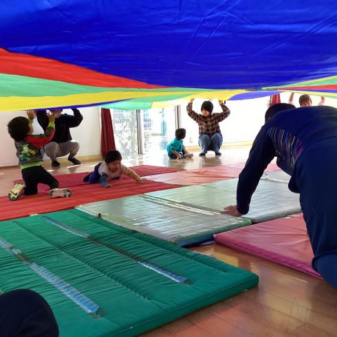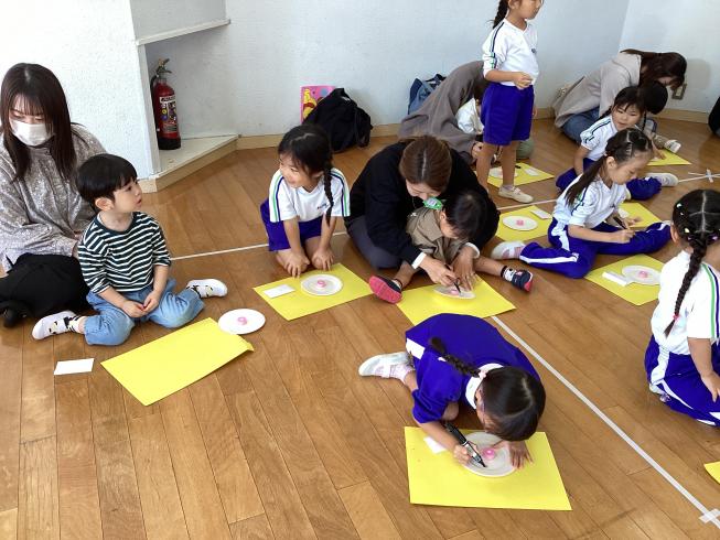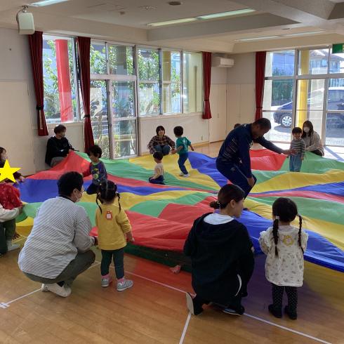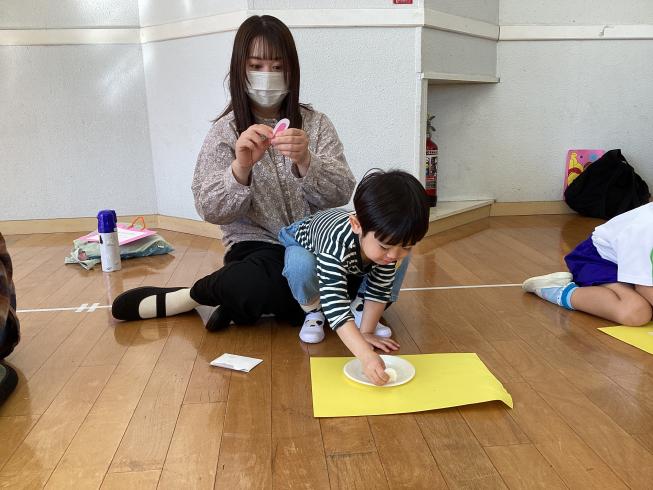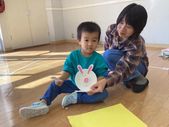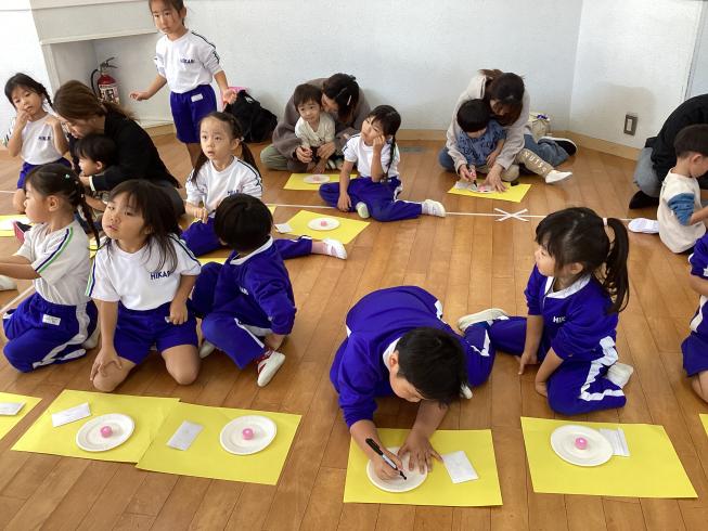 本日は第5回目のぴかりん組が開かれました!運動会明けのぴかりん組です☆運動会に参加できなかったお友だちも久しぶりにひかり幼稚園に来てくれました♪今日のぴかりん組は年中たんぽぽ組さんと一緒に活動していきます!幼稚園で2番目に大きいお兄さん・お姉さんたちです♪そんなたんぽぽ組さんと一緒にまずは朝のおはじまり!前に出てくれたたんぽぽ組さんと一緒に楽しく朝のご挨拶をします☆その後はたんぽぽ組さんと制作活動!紙皿を使って、目を描いて、耳は貼っていくと・・・?かわいいうさぎさんの完成!鼻をもって回すと、コマに大変身!可愛くて楽しいコマになりました!みんなで楽しく遊んだとは、たんぽぽ組さんからおうたのプレゼント♪楽しい時間をありがとう、たんぽぽ組さん !続いて佐野先生の親子体操!今日は運動会でたんぽぽ組さんがやったバルーン!大きいバルーンに大興奮なぴかりん組さん☆みんなで力を合わせて、引っ張って、空気を入れて、いろいろな技に挑戦!!中に入って、上でジャンプして!バルーンを満喫したぴかりん組のお友だち!そうして今回のぴかりん組の活動はおしまい。とっても楽しかったね☆次回もたくさん楽しいことをしようね☆ご参加いただいた皆様、ありがとうございました♪
