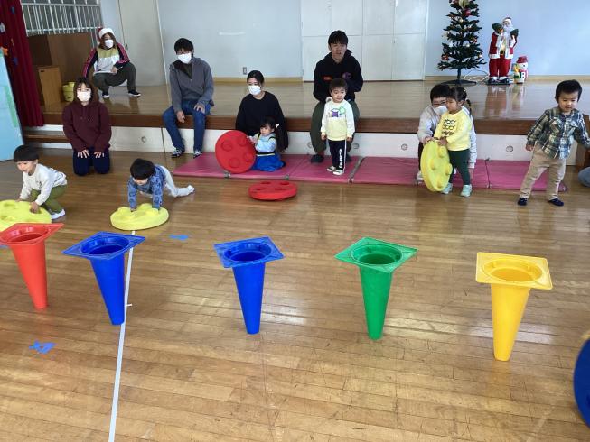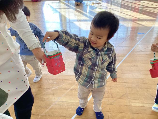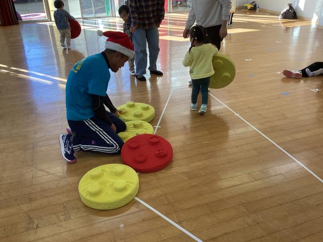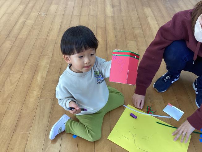本日は第6回のぴかりん組がありました!12月といえばクリスマス!今回のぴかりん組はクリスマス会☆先生たちもサンタの帽子を被ってお出迎え♪大きなツリーやお星さまの装飾も!ワクワクが止まらないぴかりんのお友だち!まずは佐野先生の親子体操!今日はレゴブロックのようなクッションを使います!積み上げ、投げて、最後には飛び込んだりも☆とっても楽しく身体を動かせました♪次はクリスマスのお制作!サンタブーツを自分好みにカスタマイズ☆シールやペンで自分で絵を描きました♪見てみて~!と可愛くできたサンタブーツを見せてくれました!どれもとっても素敵☆その後は、あわてんぼうのサンタクロースに合わせてタンバリンをみんなで楽しく叩いていると・・・?なんと!ひかり幼稚園にサンタさんがやってきてくれました☆よい子にしていたぴかりん組のお友だちにプレゼントを持ってきてくれたみたいです。今年一年よい子にしていたぴかりん組のお友だち!今年最後にとっても素敵な思い出ができたね!次回のぴかりん組は来年!今年もたくさんのぴかりん組の参加ありがとうございました♪
