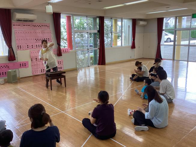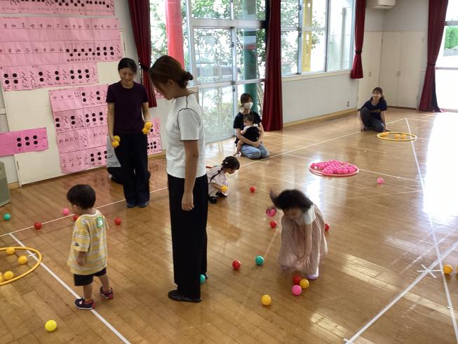 本日は第2回目のぴかりん組になります!今日のぴかりん組は「年長組さんと遊ぼう!」ひかり幼稚園には年長:さくら組さん、年中:たんぽぽ組さん、年少:すみれ組さんと各学年分かれて幼稚園で生活しています。今日は幼稚園で一番大きいお兄さん・お姉さんである年長さくら組さんと遊ぼうになります♪まずは朝のおはじまりを一緒にやってくれました!さすが幼稚園で一番大きいお兄さん・お姉さん!とってもかっこよくおはじまりをしてくれました☆続いては一緒に制作活動!6月にちなんで紙コップで作ったカタツムリを制作☆お兄さん・お姉さんたちの姿を真似して一緒に楽しそうに塗るぴかりん組のおともだち☆そうしてできたたくさんの可愛いカタツムリ!少しずつ前進する姿はとっても可愛いね☆その後は、さくら組のお友だちとバイバイして、親子体操!今日の親子体操は運動サーキット♪色々なマットや鉄棒などがジャンプ台やトンネルに大変身☆たくさんあってどれにしようか迷っちゃう・・・!お兄さん・お姉さんたちと楽しく遊んで、充実した時間を過ごしたぴかりん組のお友だちでした☆次回のぴかりん組も待っているね!ご参加いただいた皆様、ありがとうございました♪