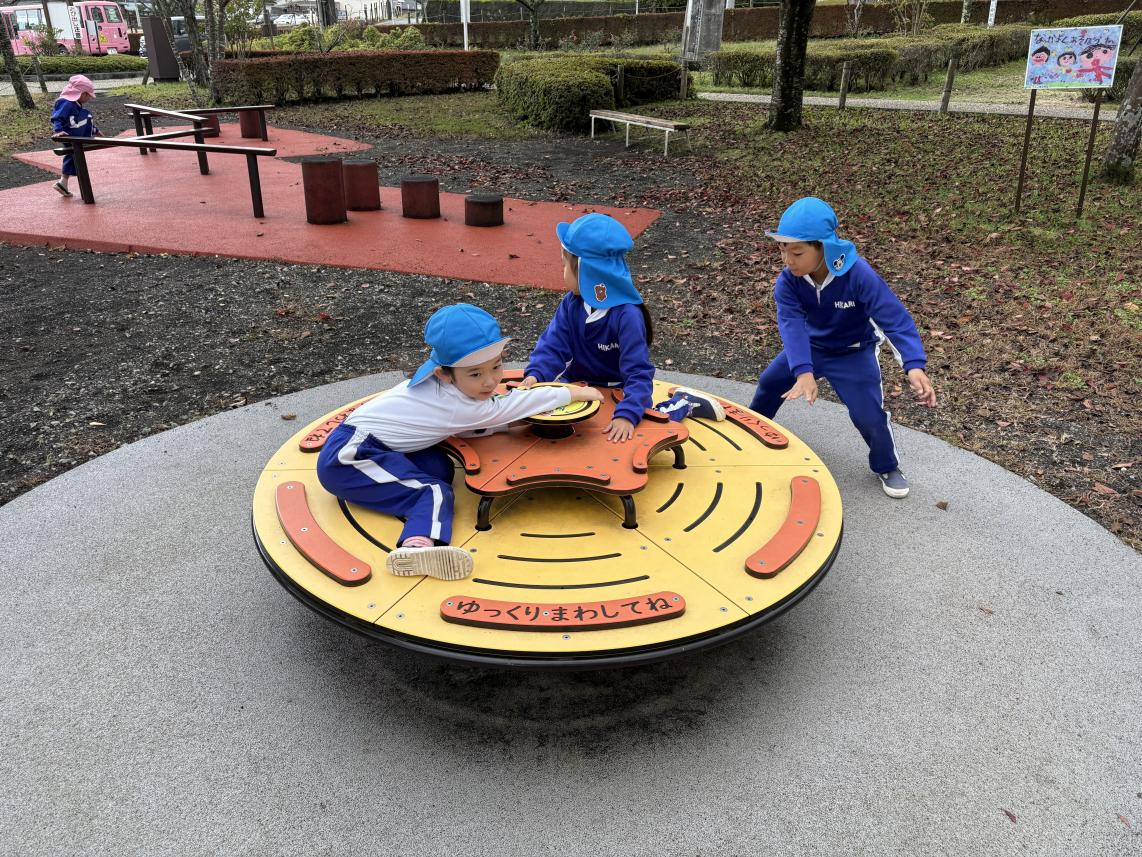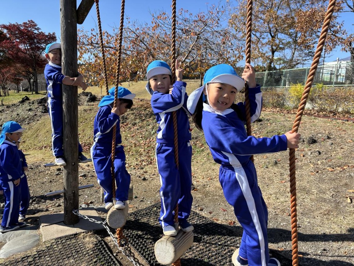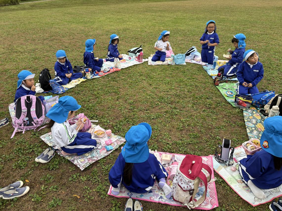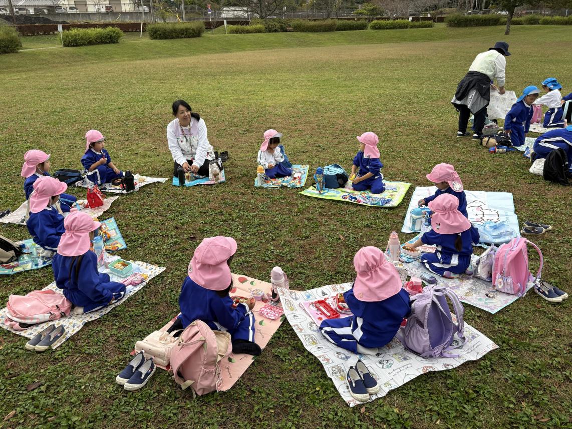 今日はみんなが楽しみにしていた秋の遠足☆全学年で「さくら公園」に遊びに行きました♪バスに乗って出発!着いて目に入ったのは大きな大きなすべり台や色とりどりのアスレチック!みんな早く遊びたくてうずうずしています!いろいろなアスレチックで身体を動かして、たっぷり遊んだ後はおうちの人が愛情込めて作ってくれた愛情弁当をみんなでいただきます☆みんなで食べるご飯はとっても美味しいね♪食べ終わった後は、みんなで秋探し!紅葉やどんぐりをお土産に持って帰りました♪たっぷり遊んだ子供たち!たくさんの思い出ができました!