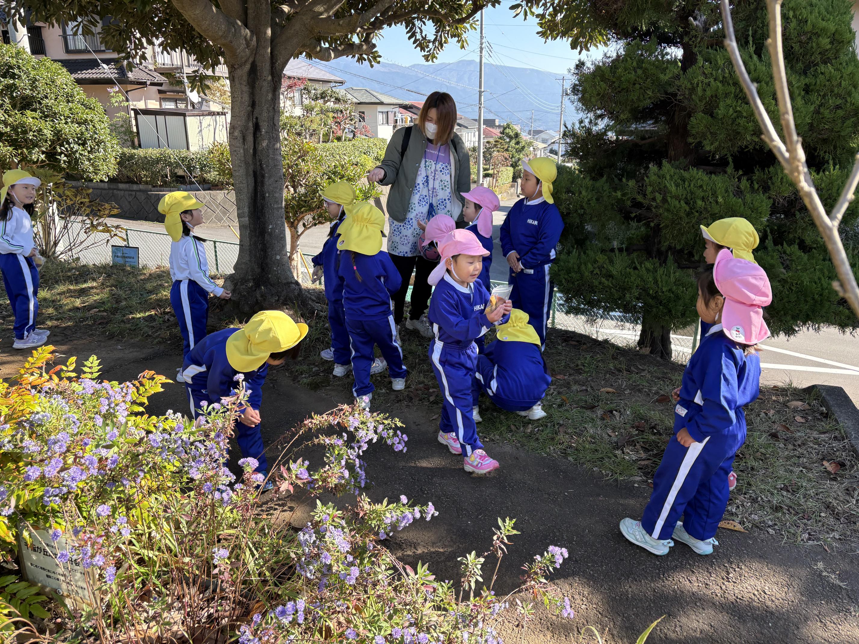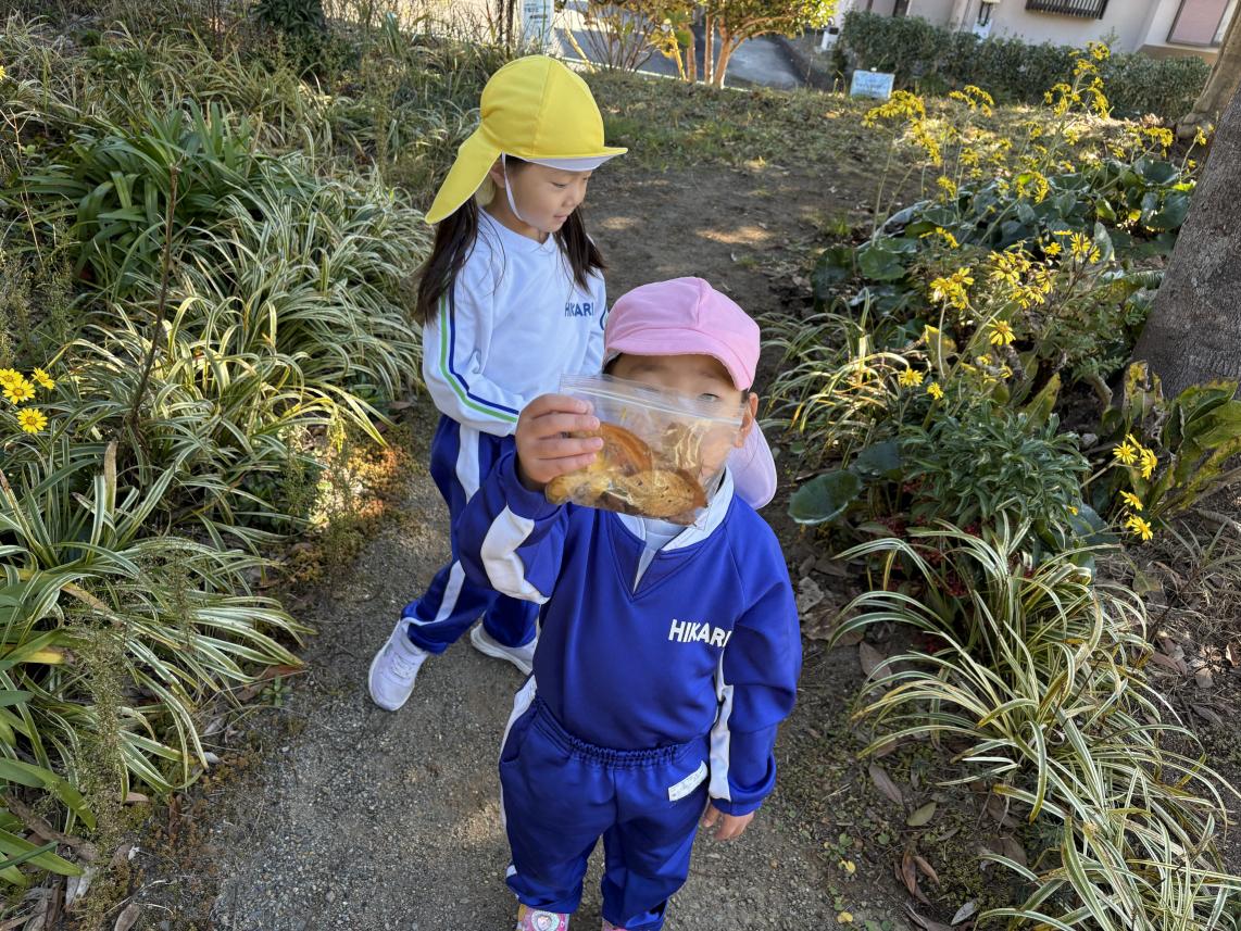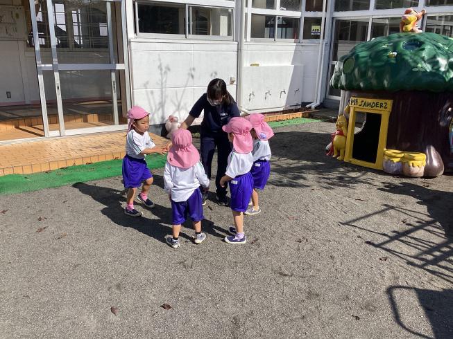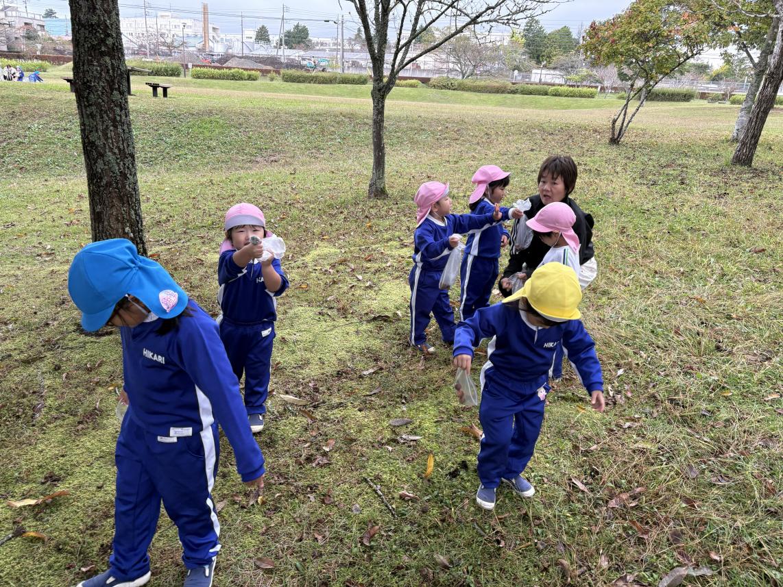 本日は年長さくら組さんがごほうび遠足で出かけているため、年少・年中組さんで近くの中央公園・なかよし公園に遊びに行きました☆2学年仲良く手を繋いで、公園へ☆なかよし公園ではみんなで秋集め♪落ちているイチョウやどんぐりをたくさん集めてお土産に!少し歩いて中央公園に移動します。運動会でたくさん練習したことが懐かしい中央公園!とっても広い公園でみんなでサッカーをして遊びました☆たくさん動いて充実した時間を過ごしたすみれ組・たんぽぽ組さんでした♪