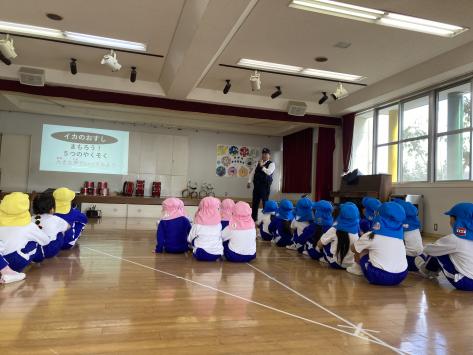 本日は幼年消防クラブ活動の一環として幼稚園に起震車が来てくれました。起震車とは地震の揺れが実際に体験できる特別な車のこと。年長組さんは幼年消防クラブ活動員として、そして来年幼年消防クラブ員になる年中組さんも参加させてもらいました!少し緊張気味な子どもたちの表情・・・!実際に起震車に乗り込んで揺れを体験すると、しっかり柱にしがみついていました。終わった子たちが口を揃えて「怖かった・・・!」地震の怖さと毎月やっている避難訓練の大切さを改めて学んだ子どもたちでした!