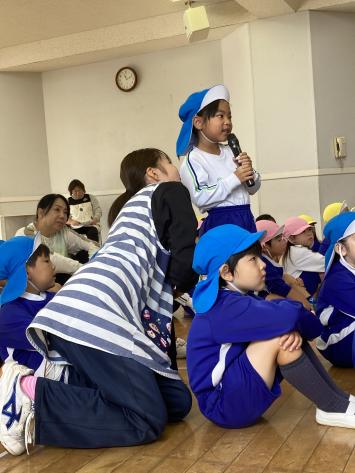 本日は10月生まれのお友だちの誕生会を行いました!今月はなんとすみれ組さんから4人のお友だちが前に出てきてくれました☆仲良く楽しそうに、前に出てきてくれた4人組のすみれさん♪みんなとっても上手にインタビューに答えてくれました☆先生から想いのこもったメッセージカードを一人一人受け取った後は、みんなからバースデーソングのプレゼント!その後は、先生からのお楽しみ!今日のお楽しみは「何が出てくるかな?みんなでお芋ほり!」みんなで黒板を使ってお芋ほり!お芋以外にもいろいろな物が出てきてとっても楽しかったね☆お誕生日、おめでとう♪