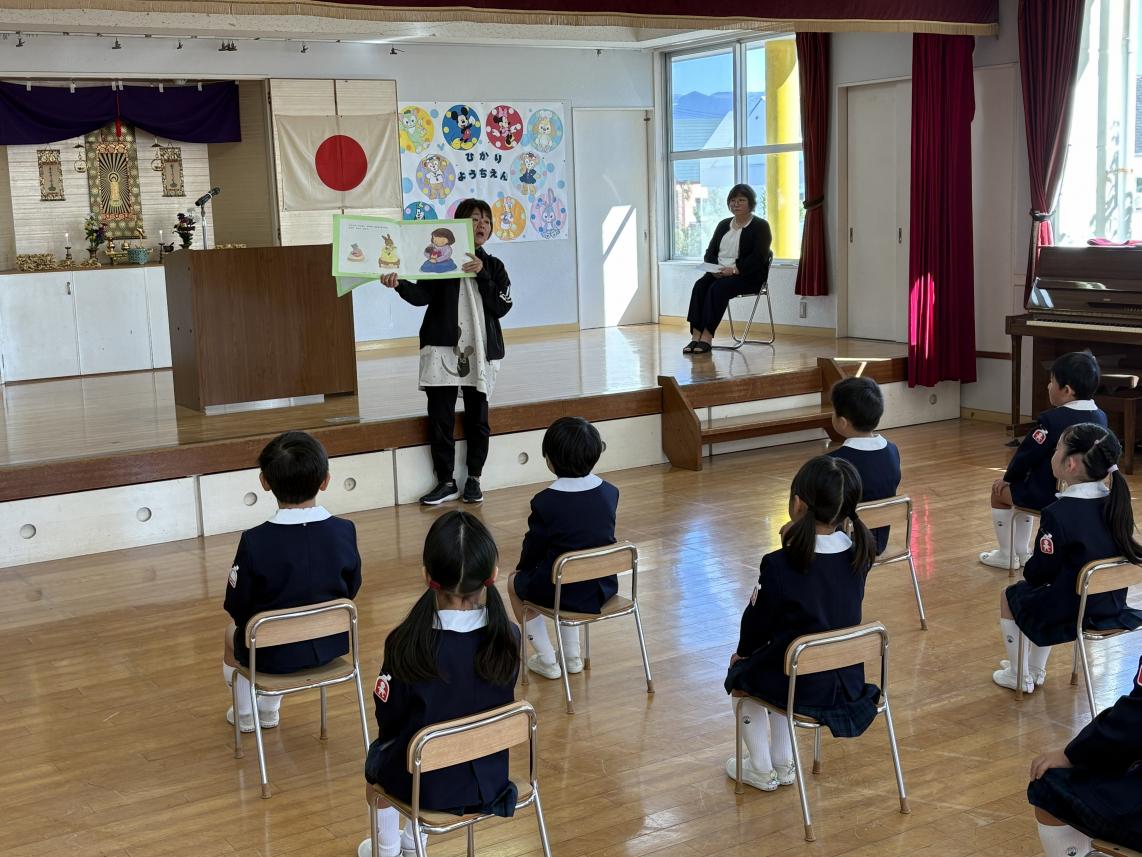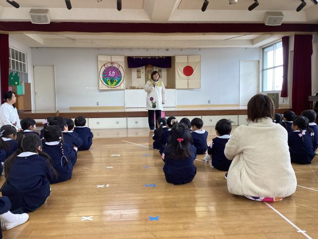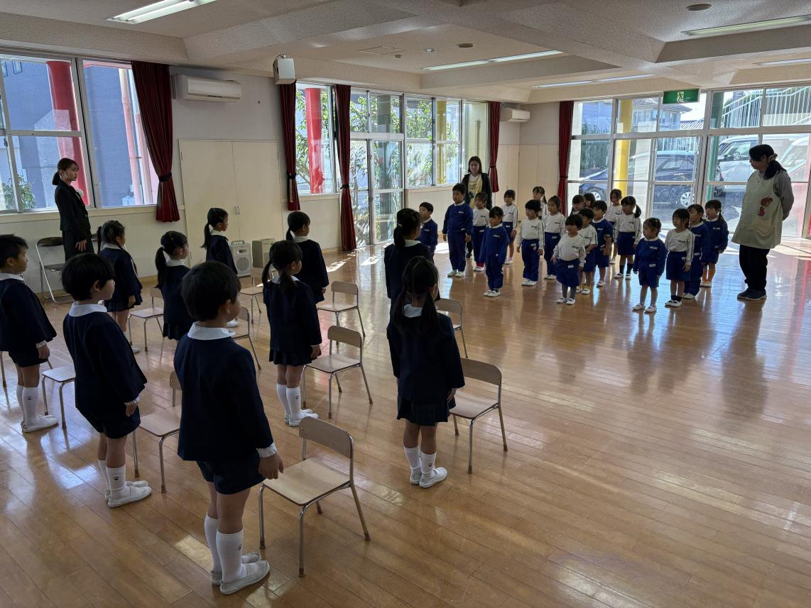 11/15は七五三。ひかり幼稚園でも年長さくら組さんを全学年でお祝いしました♪さくら組さんは制服の正装で式に臨みます!園長先生が大きくなったお祝いの言葉を述べた後、記念品を代表の子が記念品を受け取ります。その後は、さくら組さん全員で宣誓を行いました!式に臨みシャンとしたさくら組さん。続いてはみんなで楽しく、手遊びや紙芝居を行いました!最後に記念写真を撮影して、お祝いの会はおしまい。そしてなんと給食は祝い膳が出てきました!みんなで美味しく、楽しくお祝いした一日でした♪