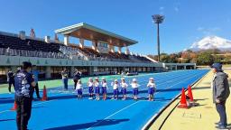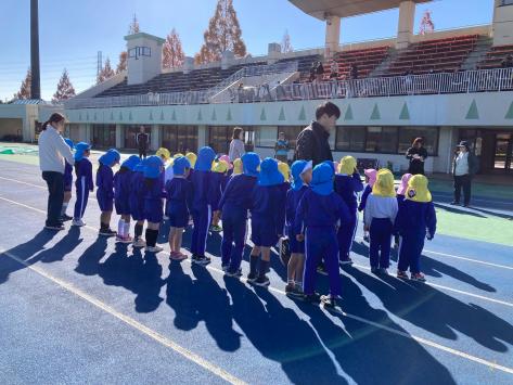 今日は裾野市の陸上競技場にてひかり幼稚園の「マラソン大会」が開かれました。この日のために毎日一生懸命園庭を走っていたお友だちたち。いよいよ本番です☆開会式を終え、準備体操をしたら、いよいよ始まりです!はじめての大舞台に緊張するすみれ組さん。去年より長い距離を頑張るたんぽぽ組さん。幼稚園最後のマラソン大会に全力のさくら組さん。それぞれの想いをもって、よーい、どん!真剣なお顔で走り切りました♪頑張った証の賞状とメダルを受け取り、マラソン大会を終えたお友だち☆頑張った金のメダルが胸に輝いていました☆