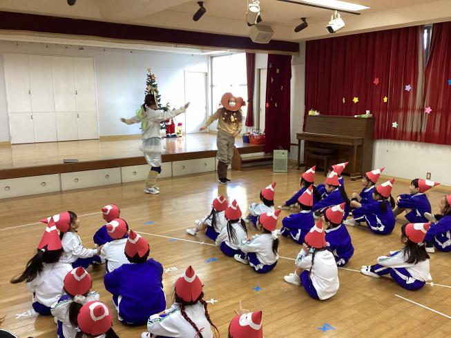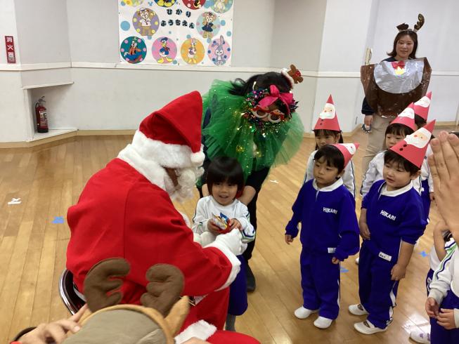 12月といえばクリスマス!というわけで、ひかり幼稚園でもクリスマス会を行いました!みんなで作ったお揃いのサンタ帽子を被って、いざ始まり☆お友だちの欲しいクリスマスプレゼントを聞くインタビューコーナーやクリスマスにまつわる〇×クイズ、先生たちによるお歌や楽器の演奏をして楽しく過ごしていると・・・なんと!ひかり幼稚園にサンタさんがやってきてくれました!今年一年とってもいい子に過ごしていたひかり幼稚園のお友だち!サンタさんはしっかり見ていてくれて、プレゼントをくれました♪最後はみんなで楽しくダンス!思い出に残るクリスマスになりました☆みんなメリークリスマス♪