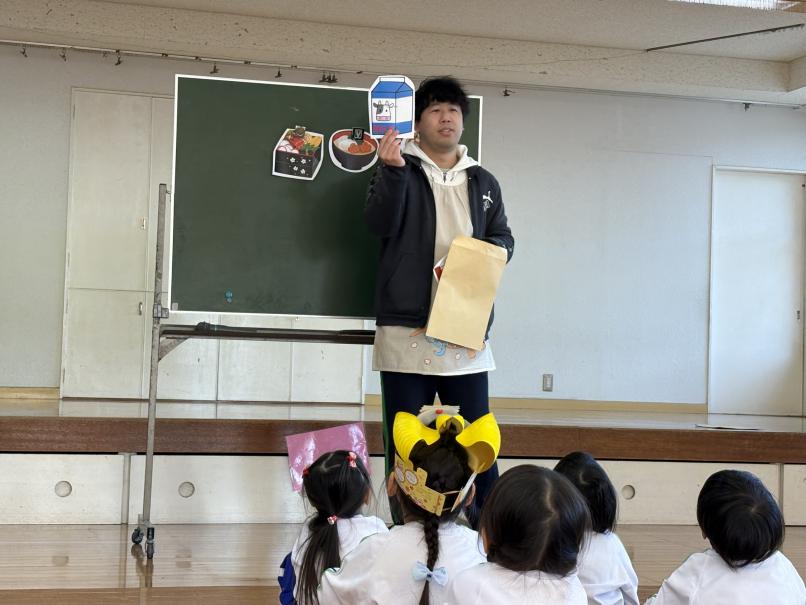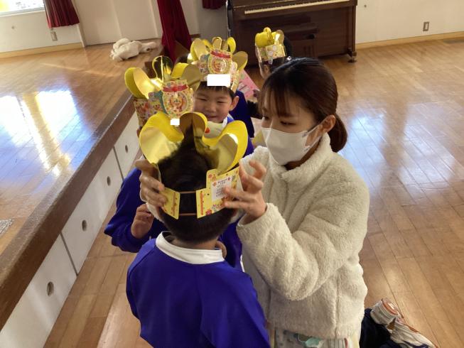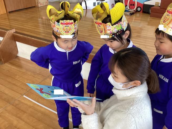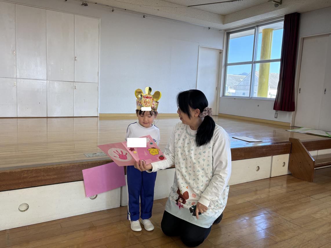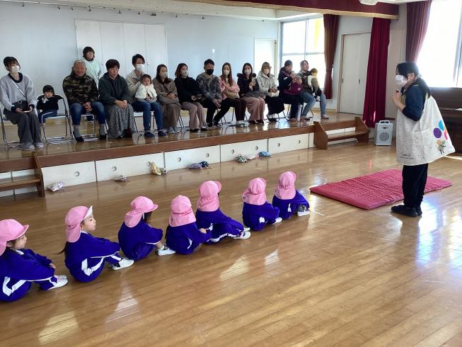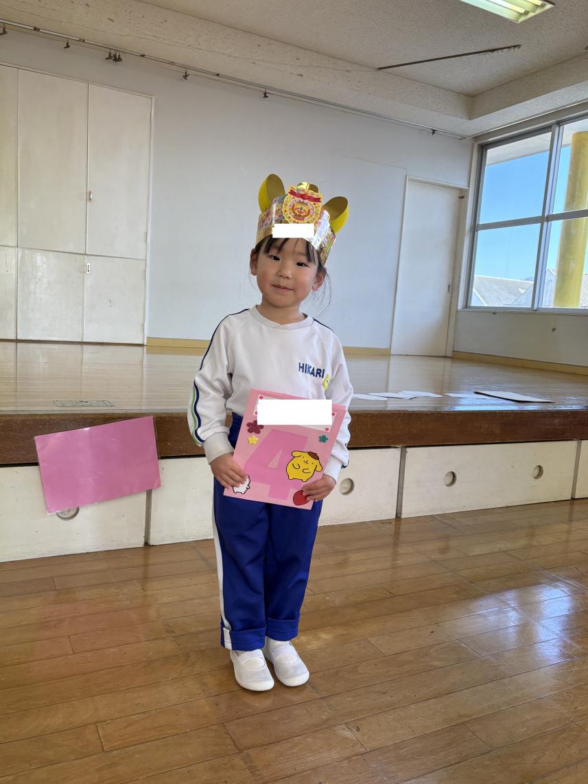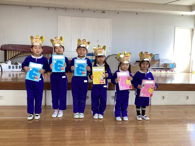 本日は1月生まれのお友だちの誕生会を行いました!1月生まれのお友だちが一人お休みのため、今日はすみれ組から1人のお友だちが前に出てきてくれました☆元気よく、嬉しそうに前に出てきてくれました♪インタビューにもしっかり答えてくれたすみれ組さん、先生から想いのこもったバースデーメッセージカードをもらったら、お友だちからお歌のプレゼント♪その後は先生からのおたのしみ☆今日のおたのしみは「何になるかな?魔法の袋のマジックショー!」何の変哲もない袋に材料をいれると・・・?おせちやケーキに大変身☆何になるかワクワクしたね♪お誕生日おめでとう♪