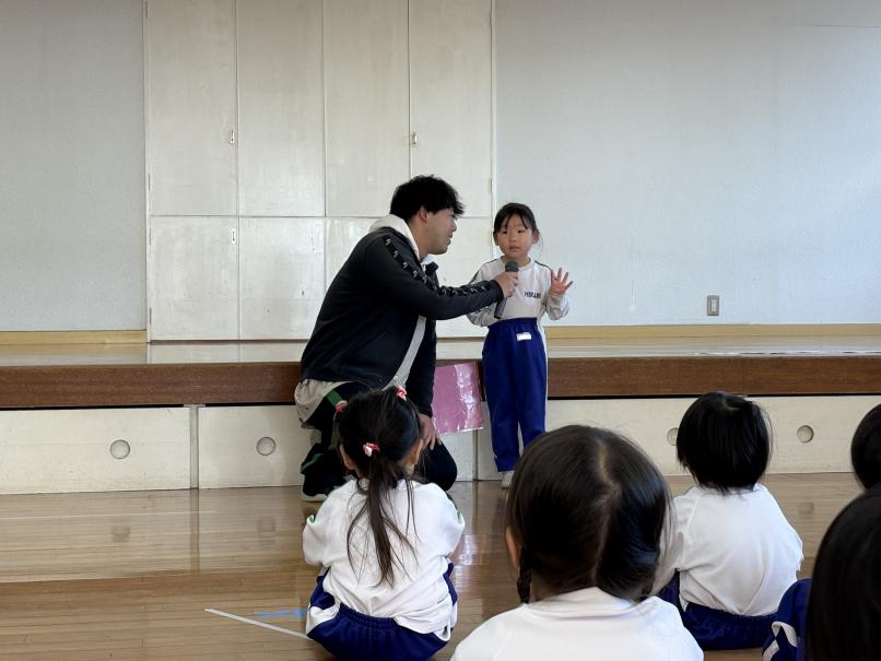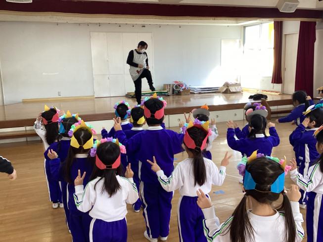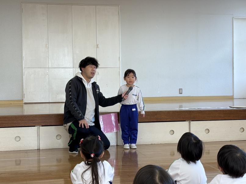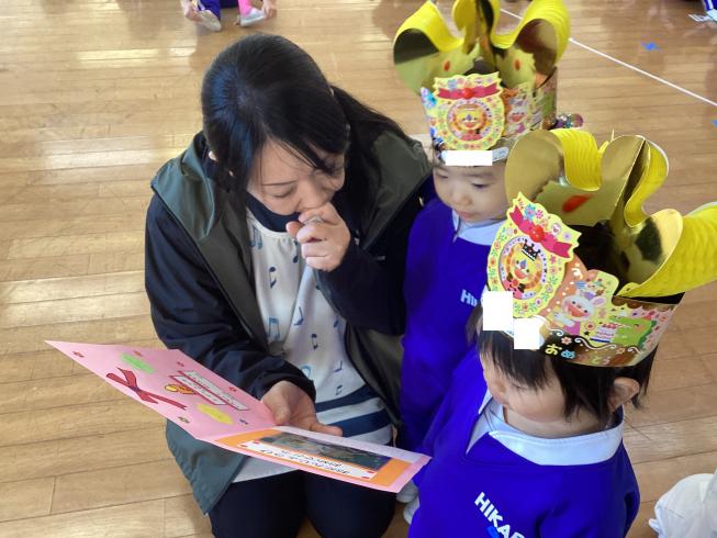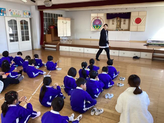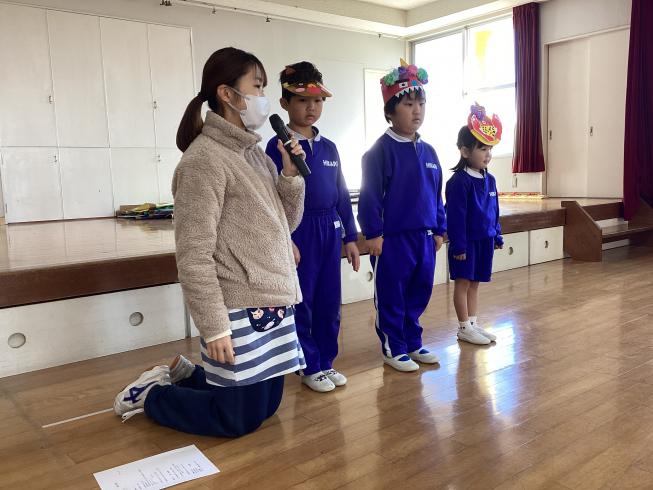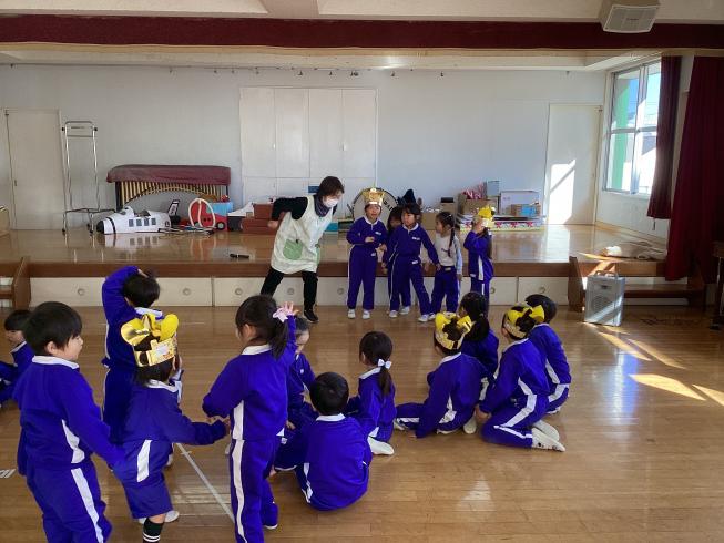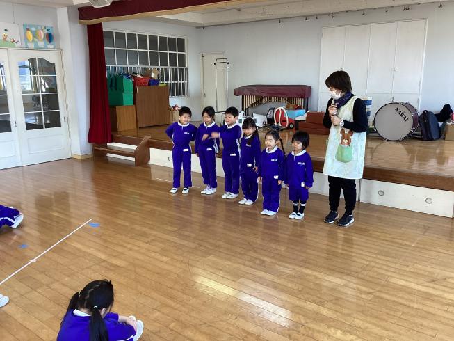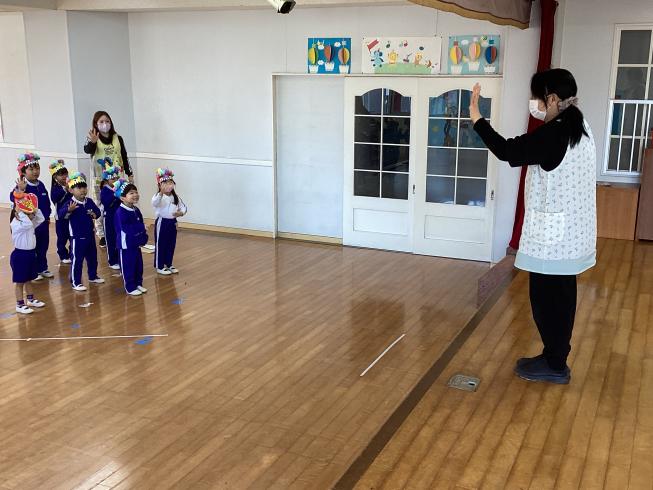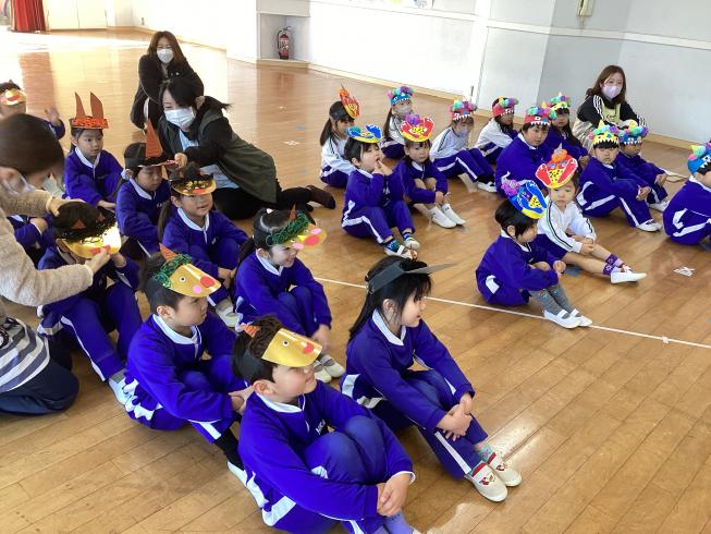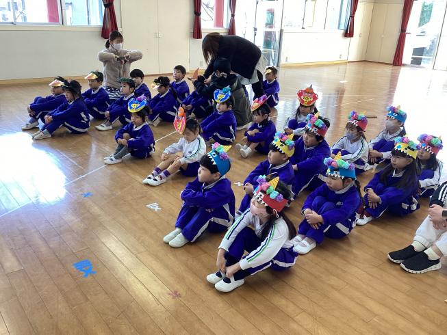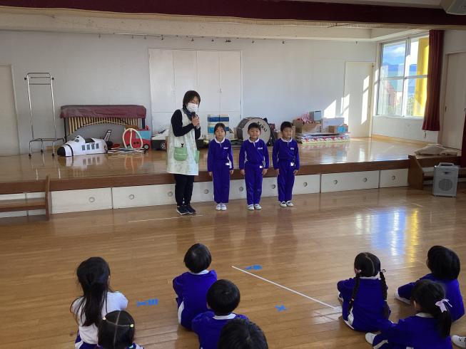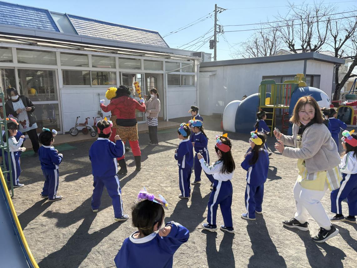 本日は2月生まれのお友だちの誕生会を行いました!今月はたくさんのお友だちが誕生日を迎えます☆まずは一番のさくら組さんからかっこいいお兄さん・お姉さんたちが前に出てきてくれました♪先月お休みだった1月生まれのお友だちも一緒に出てきてくれました☆続いては、たんぽぽ組さんから1人のお友だち!大きい声でインタビューにも答えてくれました♪最後はすみれ組さんから可愛い男の子と女の子が出てきてくれ、楽しそうにインタビューにも答えてくれました!先生たちからメッセージカード、お友だちからお歌のプレゼントをもらった後は先生からのお楽しみ!今月のお楽しみは「猛獣狩りにいこう!」学年を越えて、猛獣狩りに向かいました☆お誕生日おめでとう♪