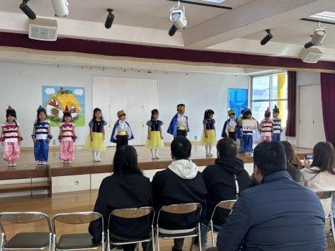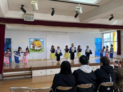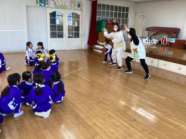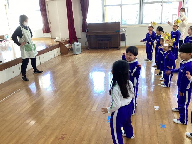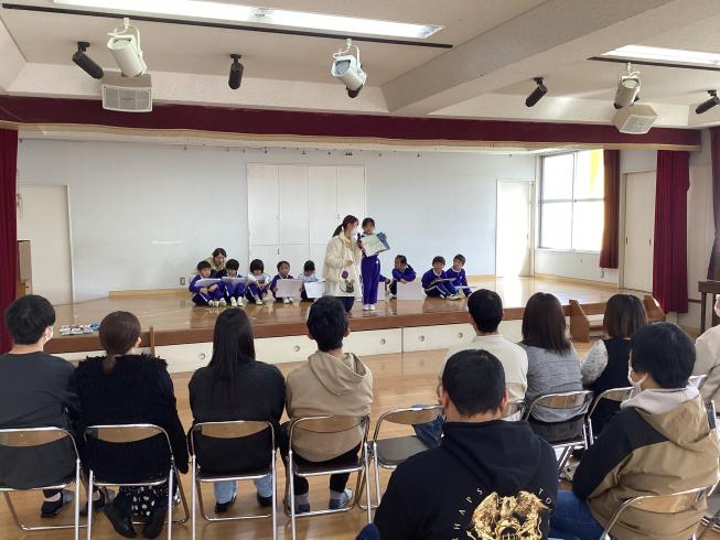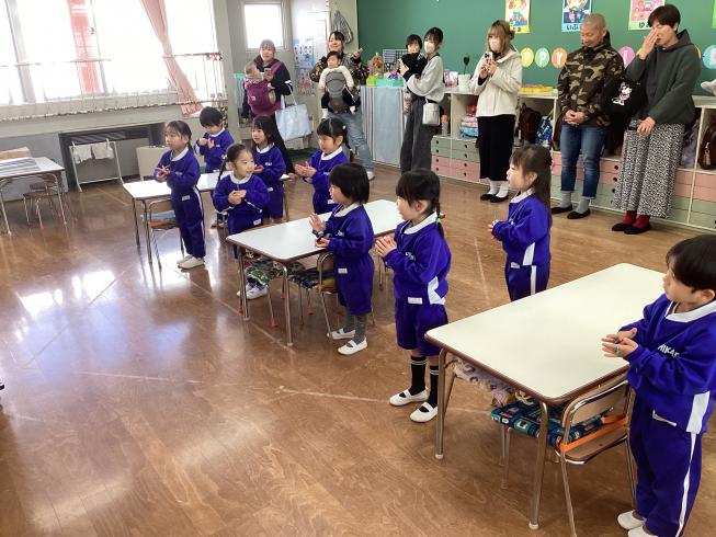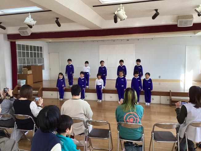 本日は年中たんぽぽ組の今年度最後の保育参観がありました!たんぽぽ組さんは発表会で披露したお遊戯とオペレッタをお遊戯室verで行いました!発表会ではお休みの子もいたため、全員揃ってのオペレッタ!みんな張り切って臨みました☆お遊戯ではステージを大きく使って、最後は忍者らしく手裏剣を投げるサプライズ演出!続いては、オペレッタ!ステージ裏やお遊戯室外、いろんなところから登場!!みんなで揃って楽しくオペレッタをすることができました♪最後は発表会で思い出に残ったところを発表!自分で絵を描いてしっかり発表できました☆
