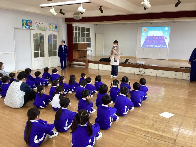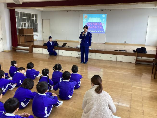 本日は進学・進級に向けて交通安全指導員さんがひかり幼稚園に交通安全教室に来てくれました☆まずは全学年で歩行指導を受けました♪映像を見ながら、道を歩くときに気を付けなければならないことや、信号を渡る注意点など楽しく、だけど真剣に学びました!さくら組さんは進学に向けて、実際に小学校までの道を歩いてみました☆信号機では車に注意し、歩くときは端を歩く・・・少し緊張したけど、とても練習になりました♪交通ルールをしっかり学んだお友だち!これからも安全に幼稚園に来てね!